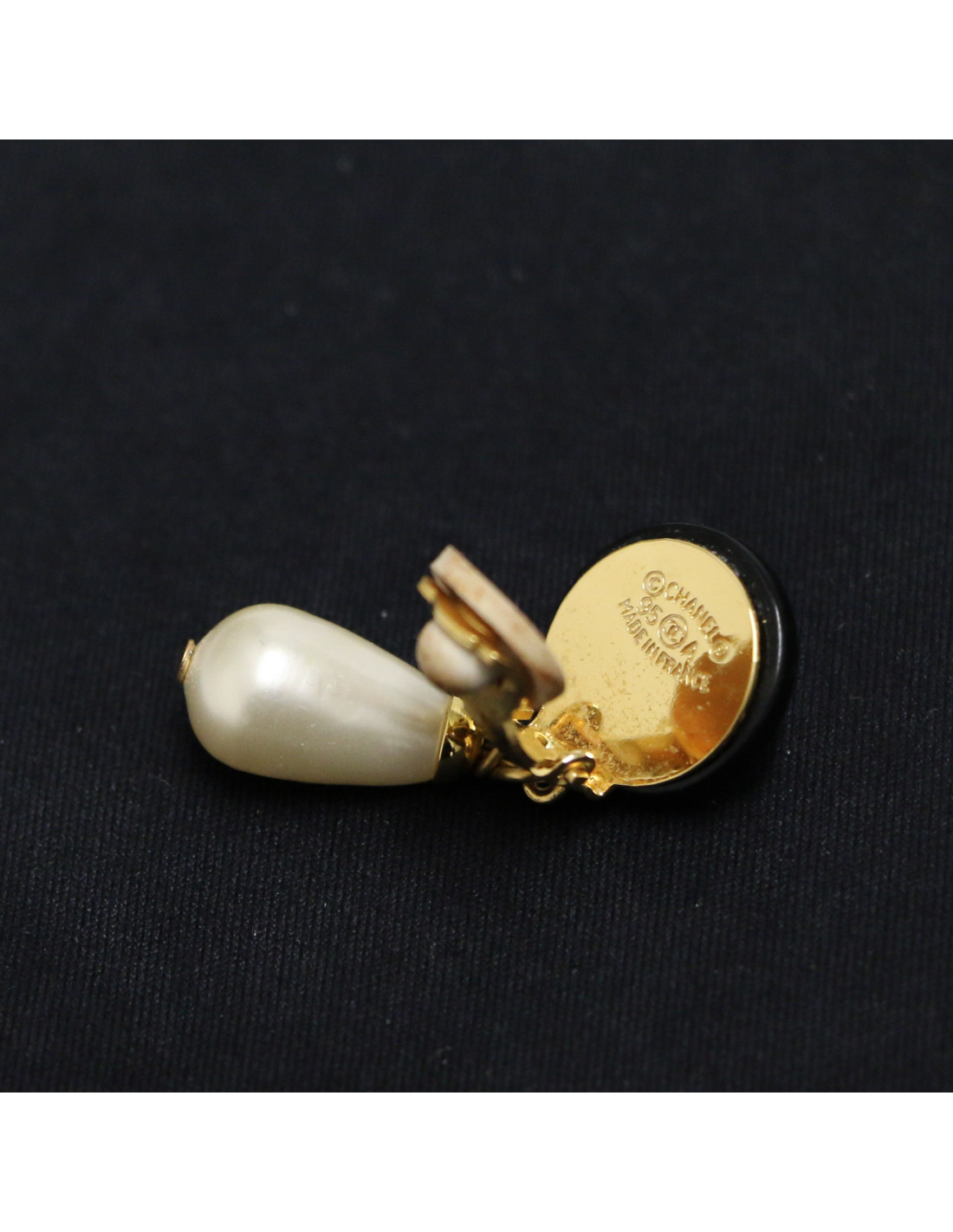 Last items in stock EARRINGS CHANEL vintage clip-on earrings in gilded metal, pearls CHANEL 20938 1,450.00 € Couture! Imposing Chanel round clip-on earrings in gilded metal, mother-of-pearl piece in the center and set with pearls all around. In good condition. Vintage jewel. Dimensions: 4.7 cm in diameter Delivered in a Valois Vintage Paris pouch Add to cart