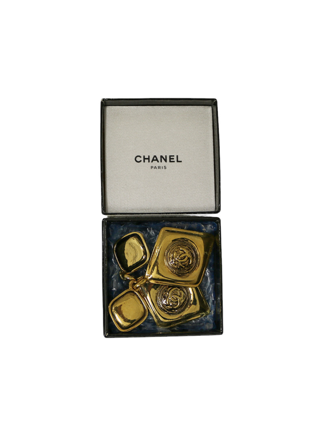 Last items in stock EARRINGS CHANEL vintage circular gilded CC clip-on earrings CHANEL 34200 1,260.00 € CHANEL vintage circular gilded CC clip-on earrings Condition : very goodMade in FranceMaterial : 24k gold plated metalColor : goldMeasurements : diameter 3cmHardware : goldStamp : yesYear: Fall 1994Details : Circular gilded CC earrings. Advantage Valois Vintage Paris : come in their original Chanel box Add to cart