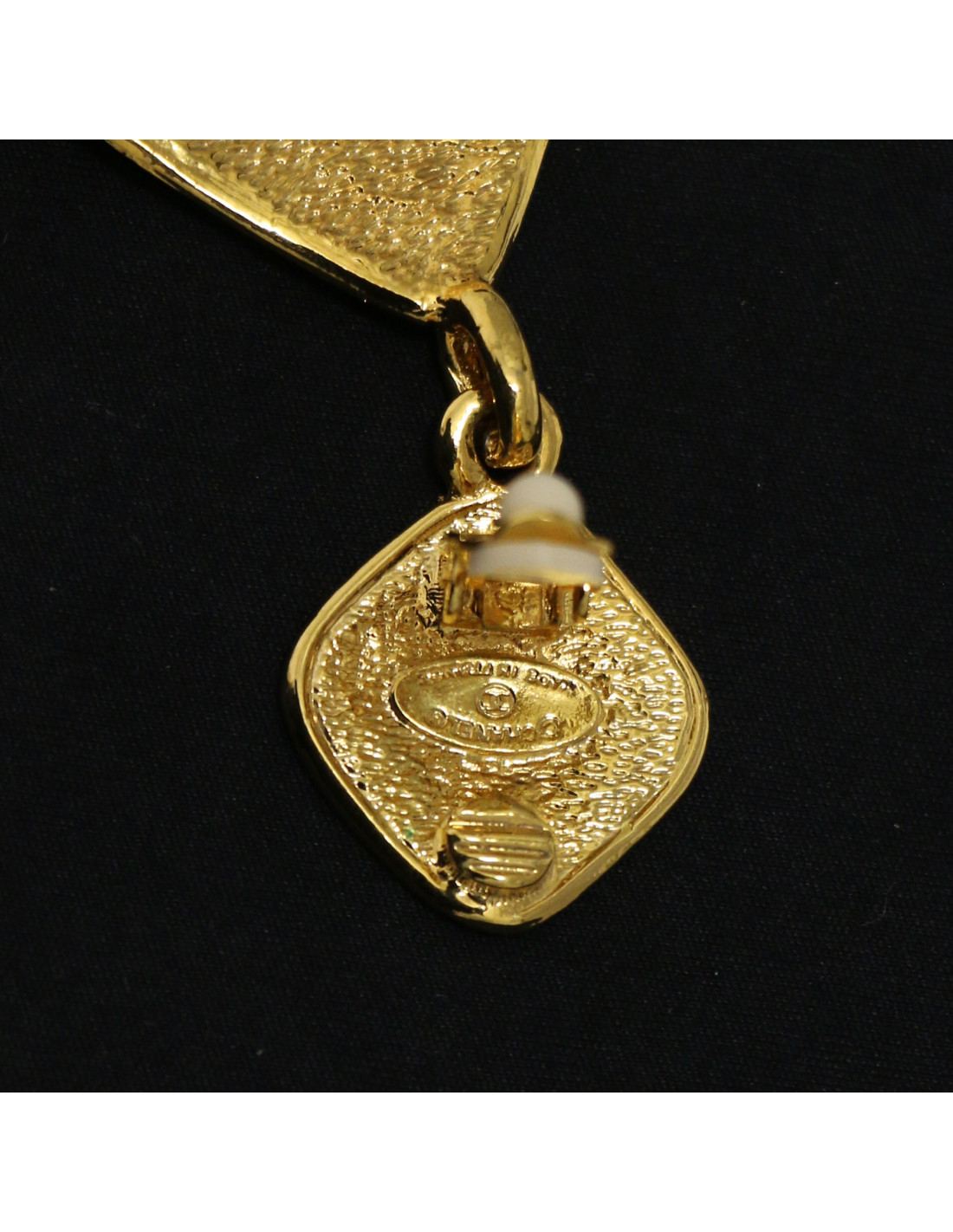 Last items in stock EARRINGS CHANEL vintage clip-on earrings in gilded metal, pearls CHANEL 20938 1,450.00 € Couture! Imposing Chanel round clip-on earrings in gilded metal, mother-of-pearl piece in the center and set with pearls all around. In good condition. Vintage jewel. Dimensions: 4.7 cm in diameter Delivered in a Valois Vintage Paris pouch Add to cart