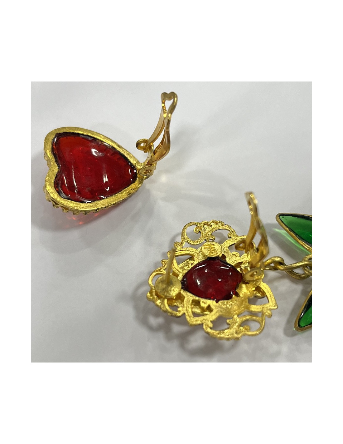 Last items in stock EARRINGS MARGUERITE DE VALOIS molten glass clip-on earrings MARGUERITE DE VALOIS 33516 230.00 € MARGUERITE DE VALOIS handmade molten glass clip-on earrings Condition : very goodMade in FranceCollection :clip-on earringsMaterial: molten glassColors: red, sly blueMeasurements:Height 3,5 cmHardware: goldDetails : pretty pair of Marguerite de Valois clip-on earrings in handmade molten glass Add to cart
