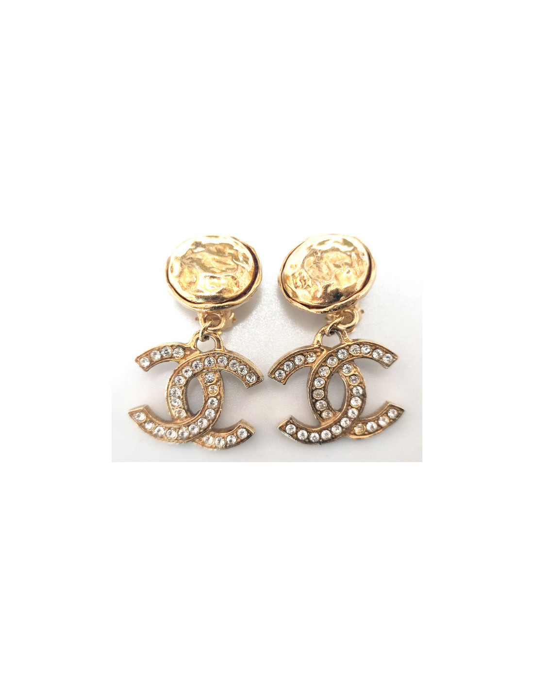 Last items in stock EARRINGS CHANEL Vintage round gilded clip-on earrings CHANEL 31561 1,290.00 € CHANEL Vintage round gilded clip-on earrings Condition: very goodMaterial : metal Color : goldStamp : noYear : 1988-1989Measurements : 3.5 x 3.5 cm Add to cart