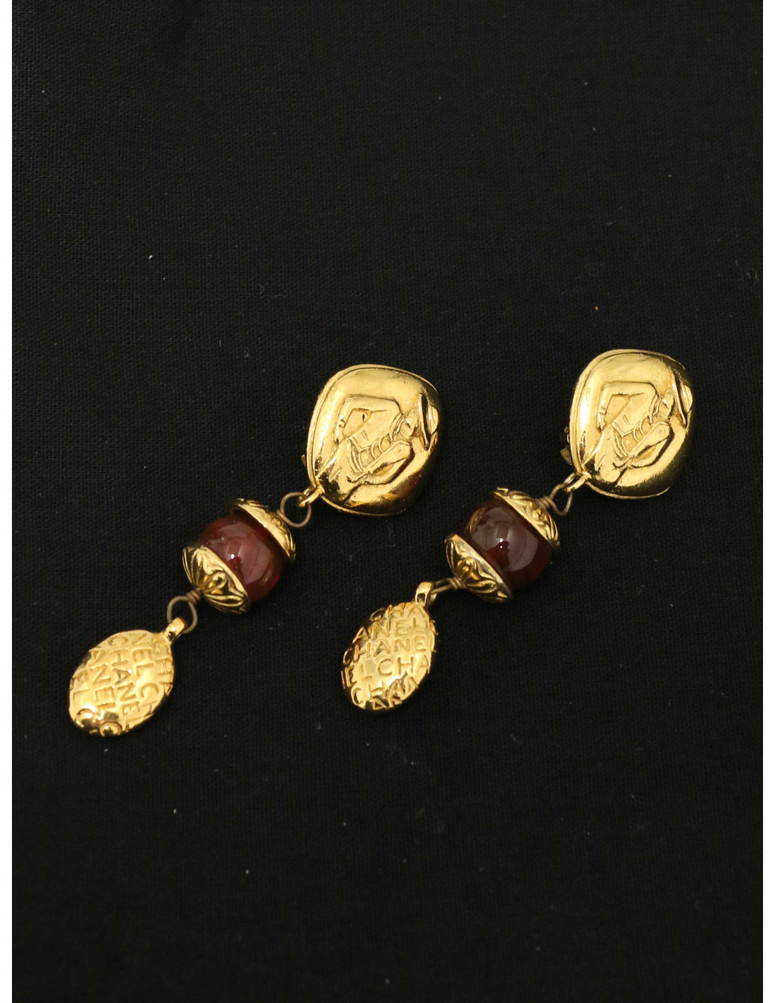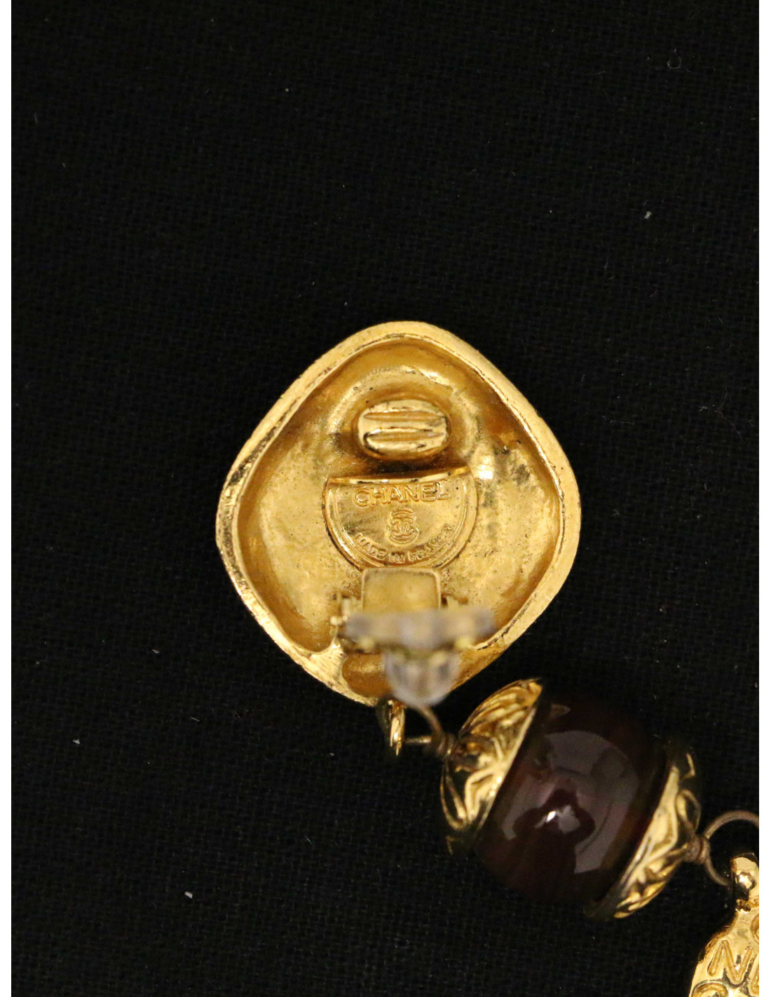 Last items in stock EARRINGS CHANEL Vintage round gilded clip-on earrings CHANEL 31561 1,290.00 € CHANEL Vintage round gilded clip-on earrings Condition: very goodMaterial : metal Color : goldStamp : noYear : 1988-1989Measurements : 3.5 x 3.5 cm Add to cart