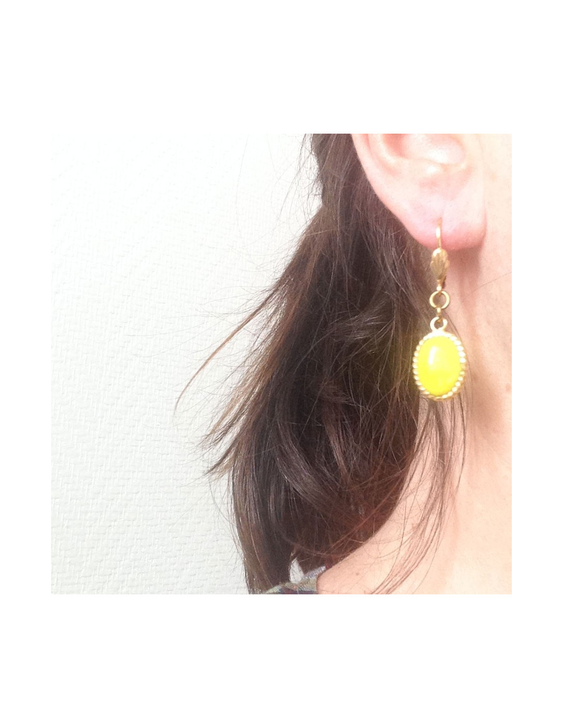Ear studs Marguerite de Valois, oval in opaque yellow glass and metal gold fine gold.