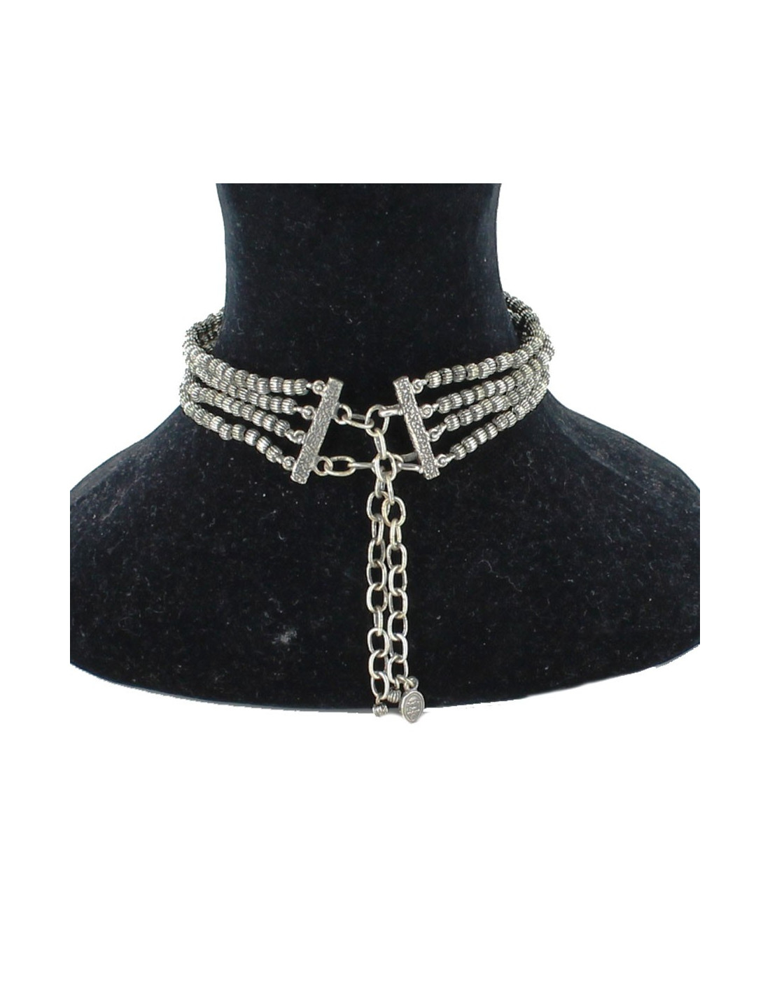 CHRISTIAN DIOR set necklace and clip-on earrings in aged silver metal