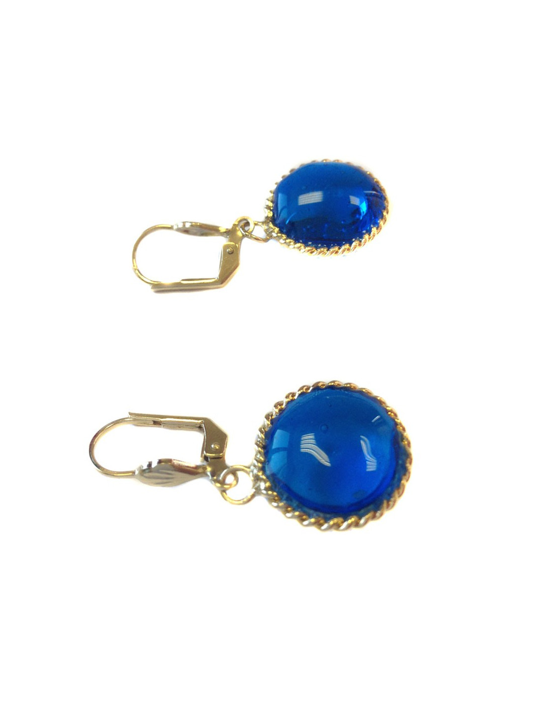 Marguerite of Valois ear studs, Golden to pale gold, sapphire blue glass. Never worn.