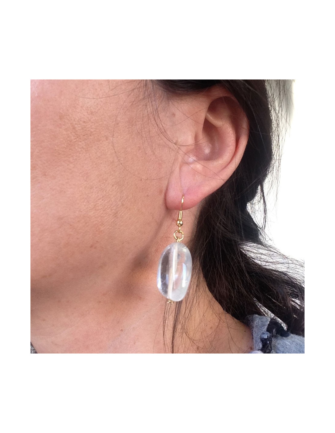 Nails of ear pendants Marguerite of Valois in Crystal of rock, form elongated, terminated by a rhinestone swarovski seam closed (Golden thin metal).