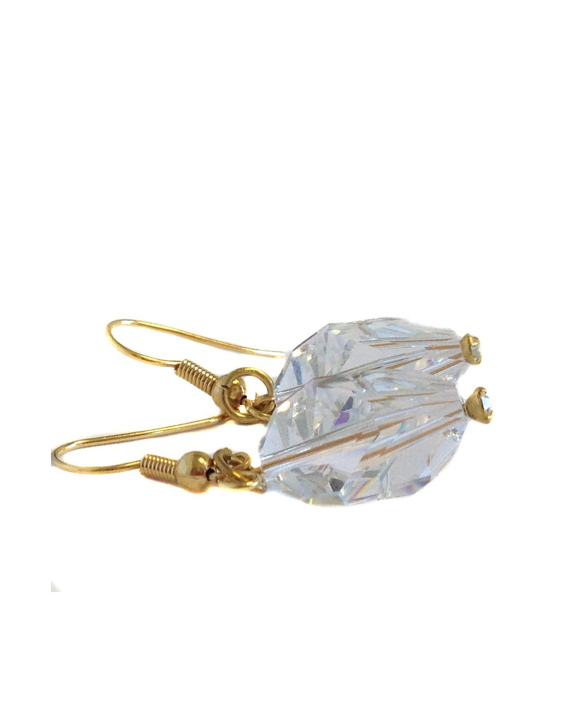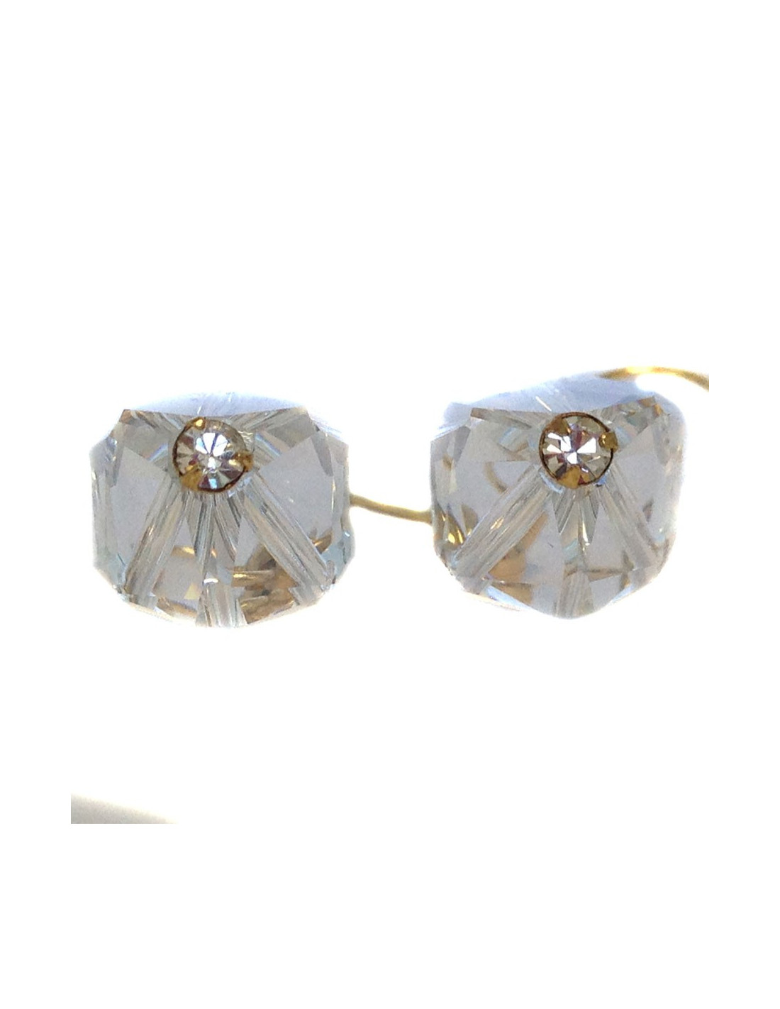 Lovely nails of ears Marguerite of Valois, composed of a Crystal swarovski to multiple faces, completed by a rhinestone in seam closed (Golden thin metal). Never worn.