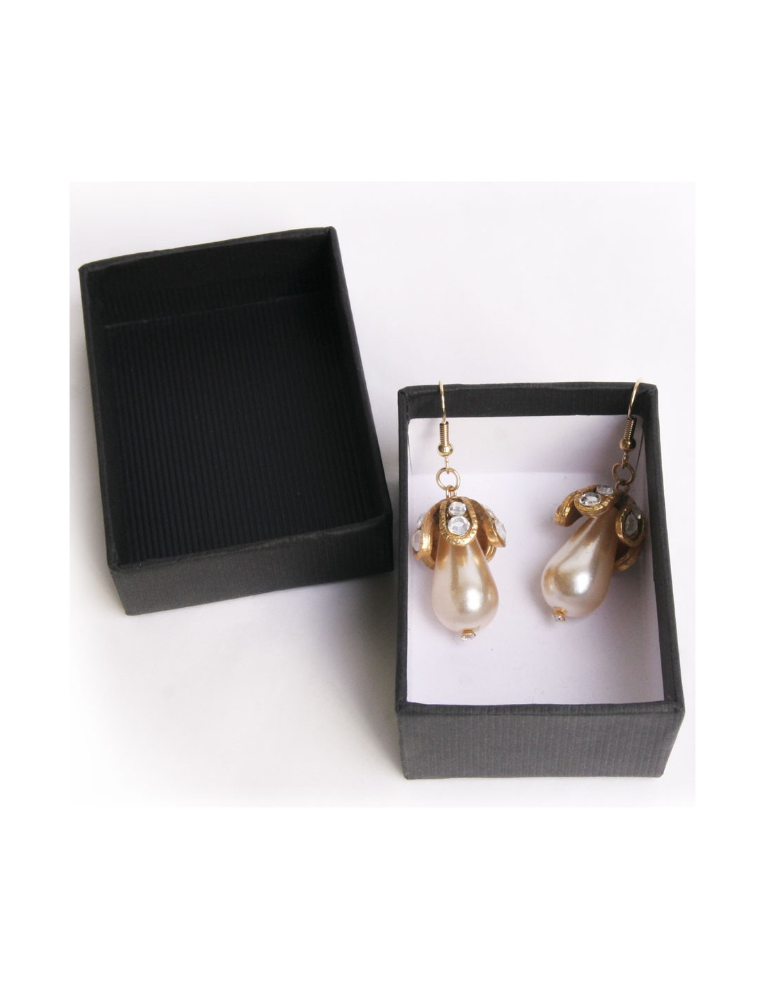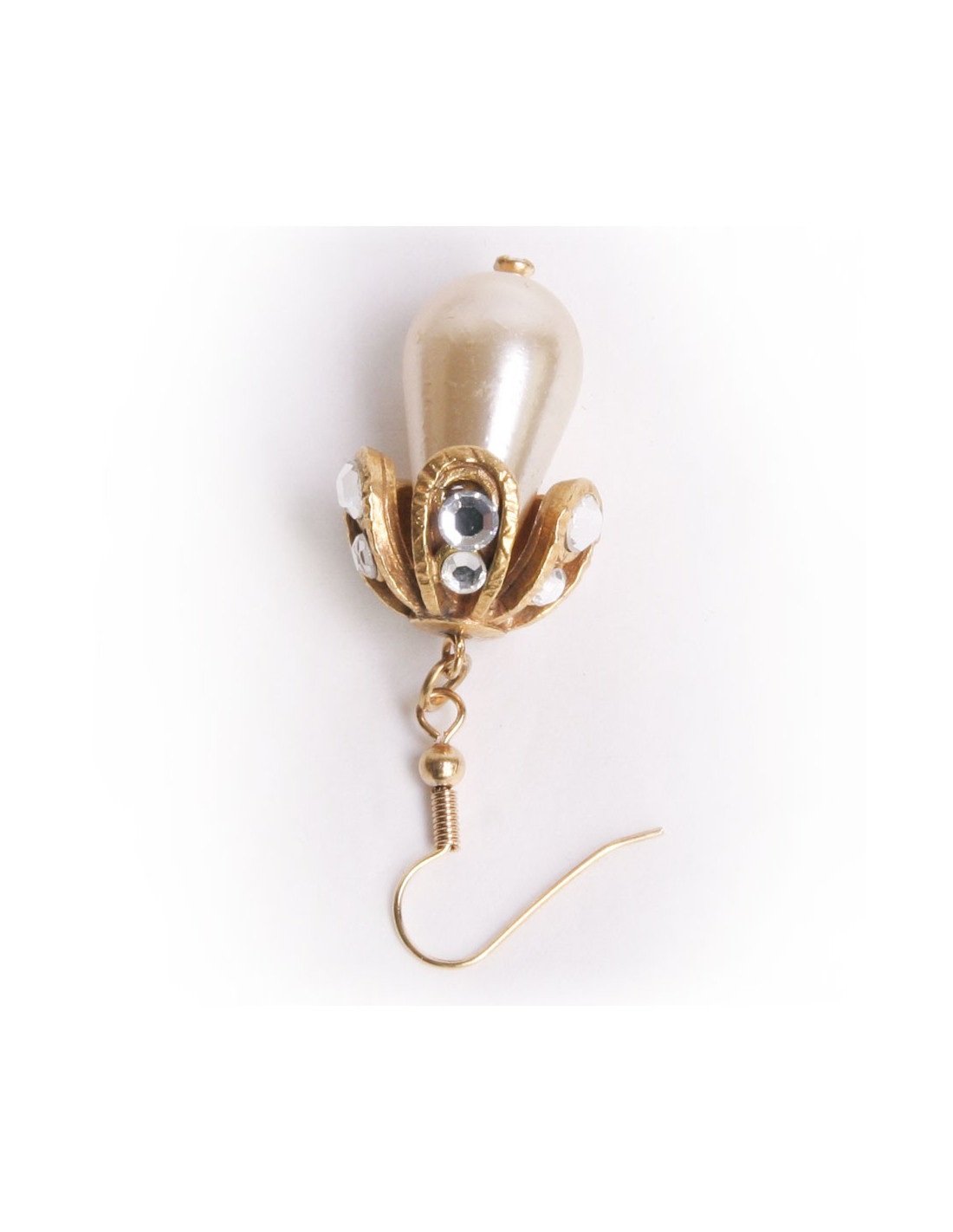 ear Marguerite of Valois in gold metal and rhinestone studs. A Pearly Pearl oval topped an emerald Pearl, ends with a rhinestone gives all its elegance. Gold metal.