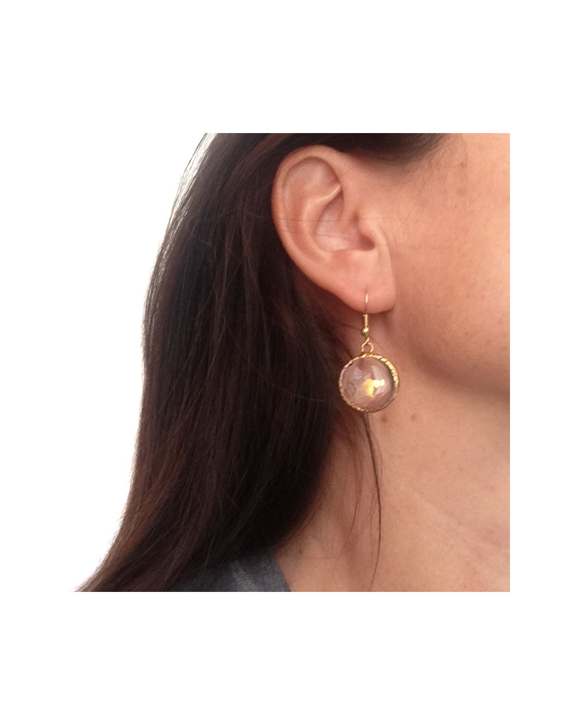 Nails Marguerite of Valois glass block and leaf earrings gold