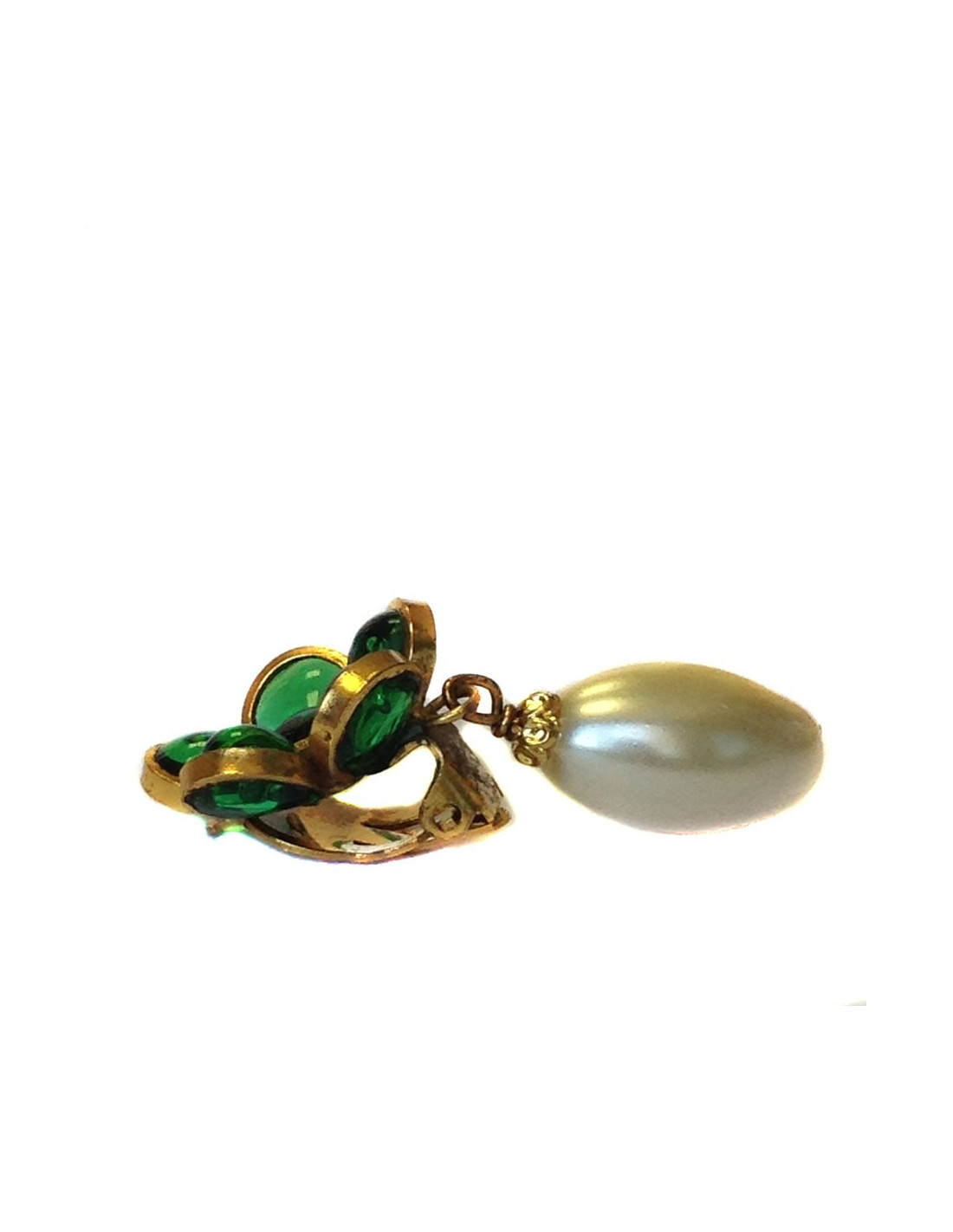 Clips floweret Marguerite of Valois Emerald glass and Pearl oval Pearl