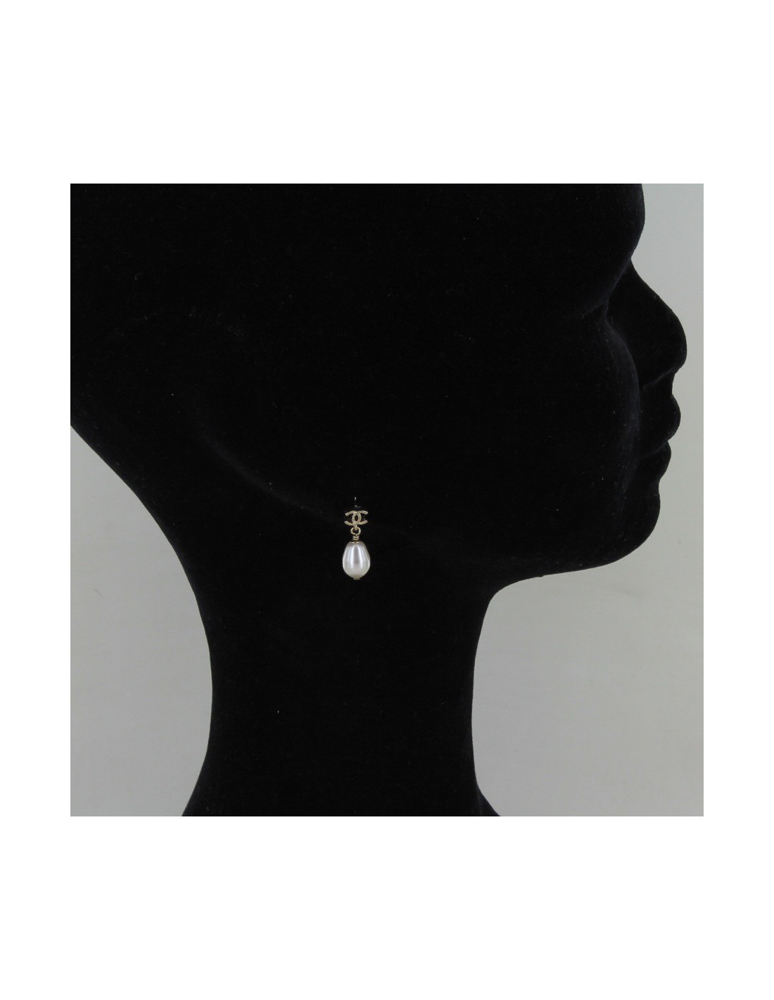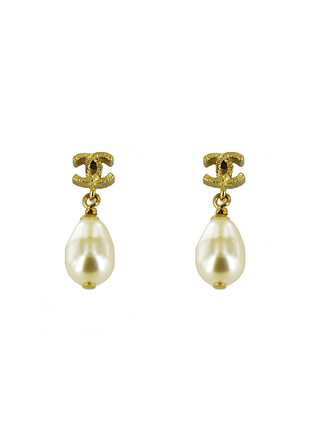For VC nails CHANEL guilloché gold metal and hanging Pearl oval bead earrings