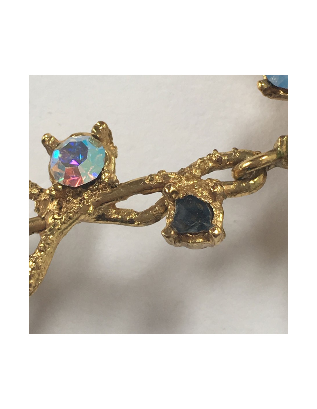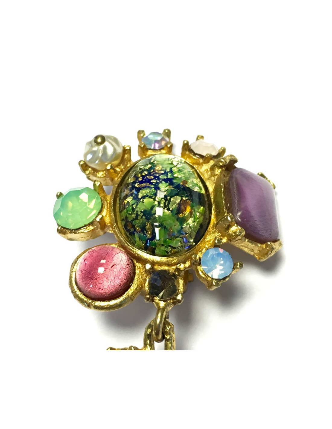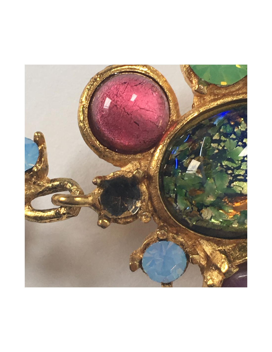 Superb! Earrings hanging clips CHRISTIAN LACROIX couture. Gold metal, set with multicolored stones, pearly Pearl and rhinestones. Missing a little green rhinestones on a loop and one small blue rhinestones on the other.