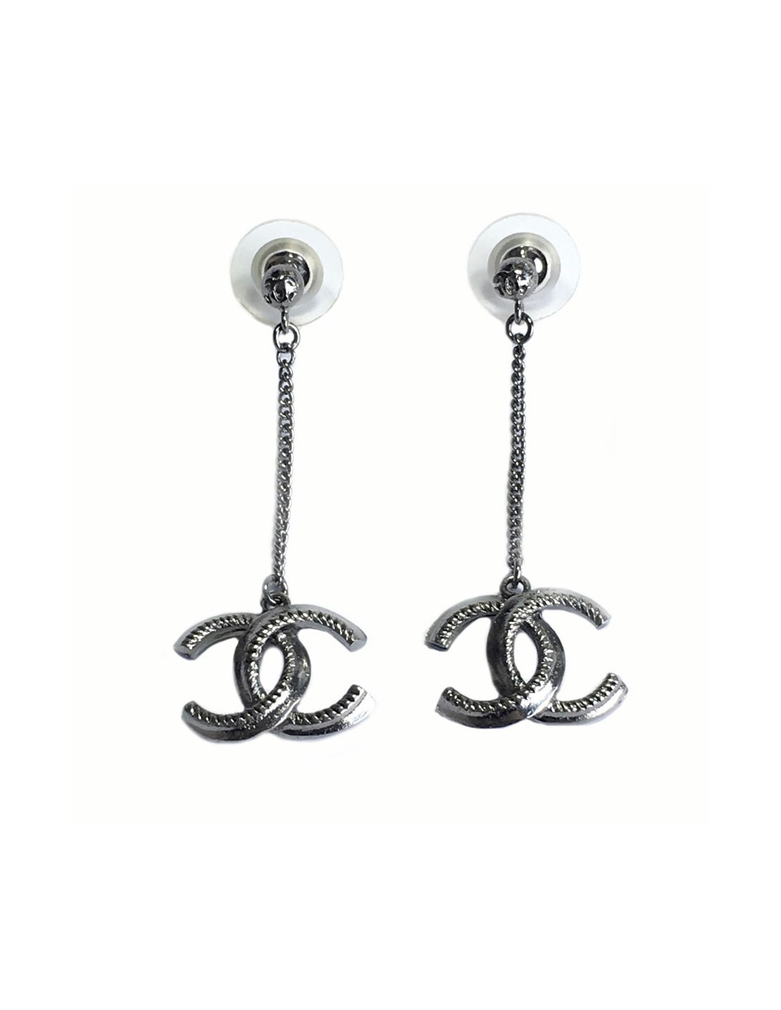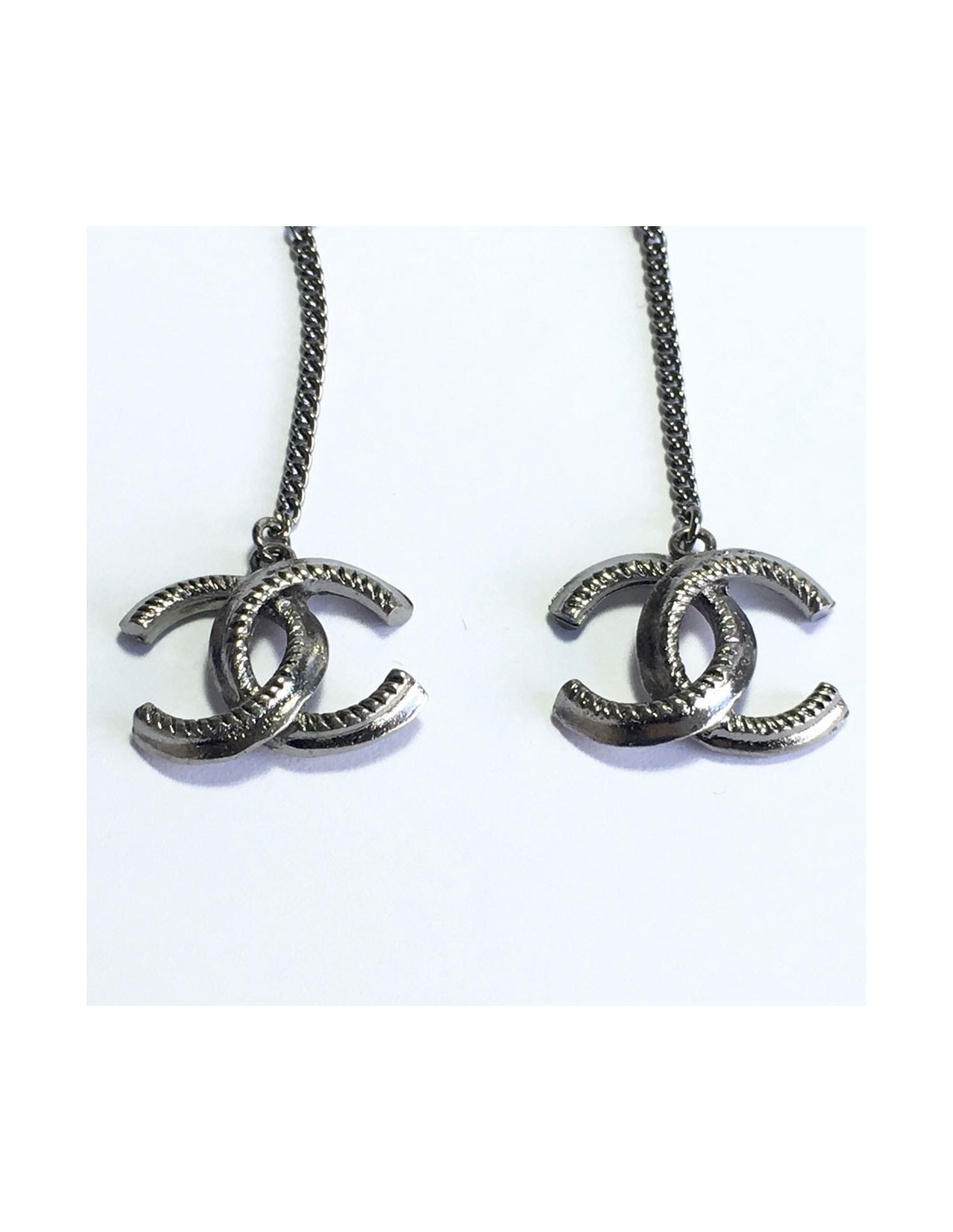 Dangling silver metal nails CHANEL earrings