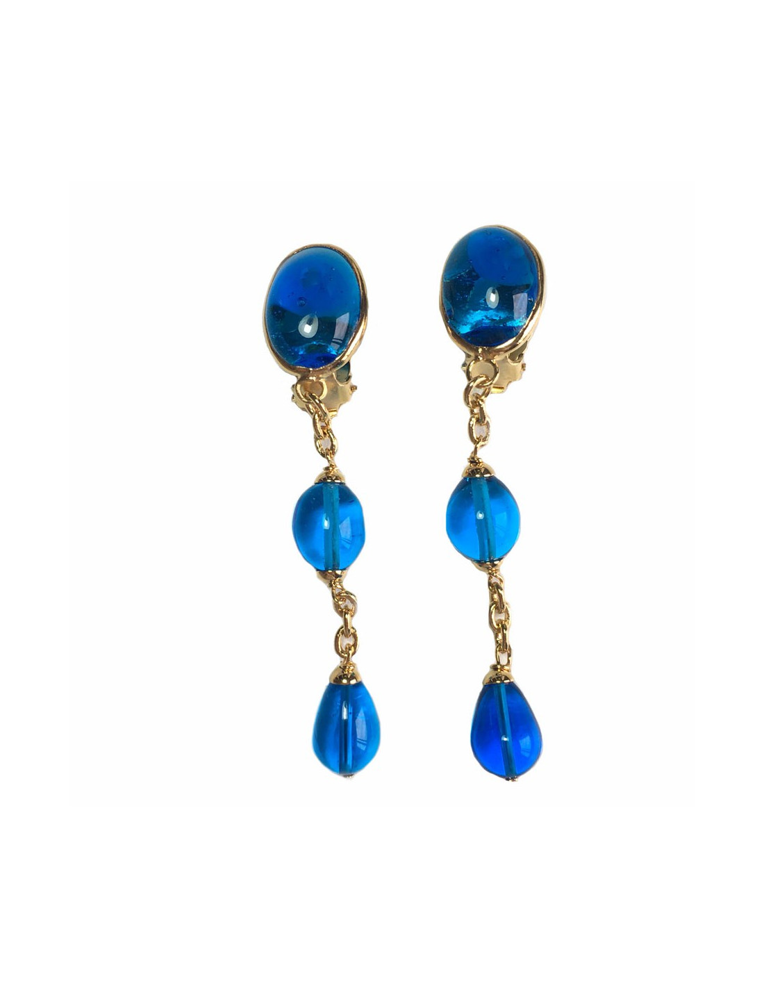 Pair of MARGUERITE DE VALOIS blue molten glass and gilded metal clip-on earrings. They have never been worn. Made in France. Each piece is unique, as it is handmade.