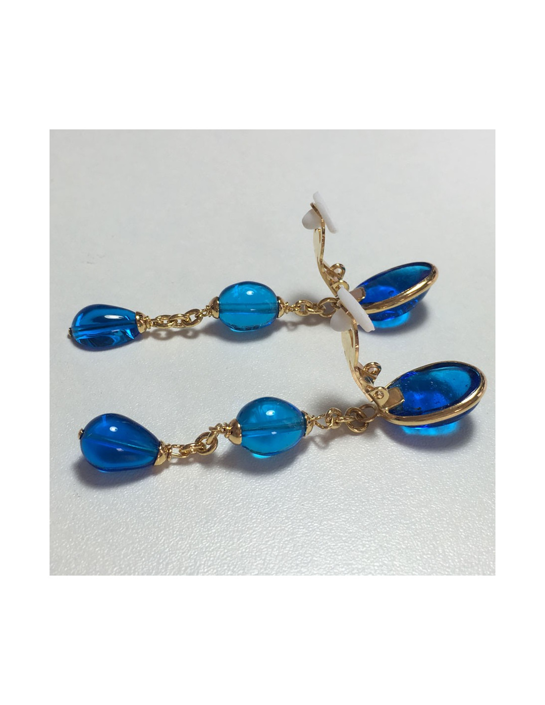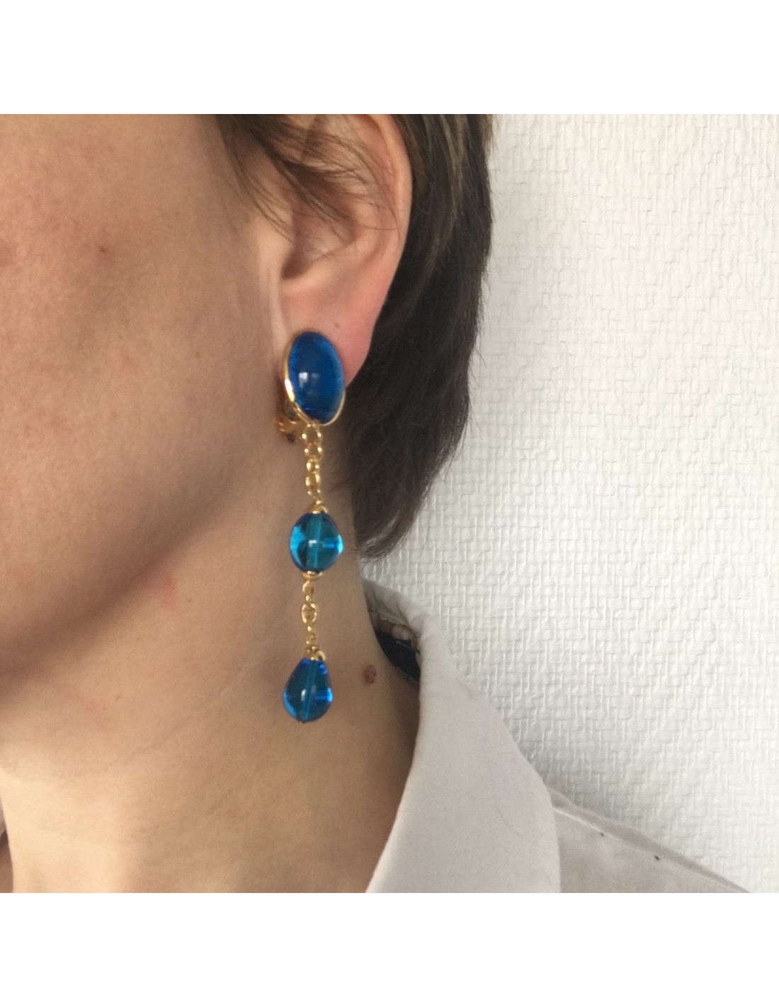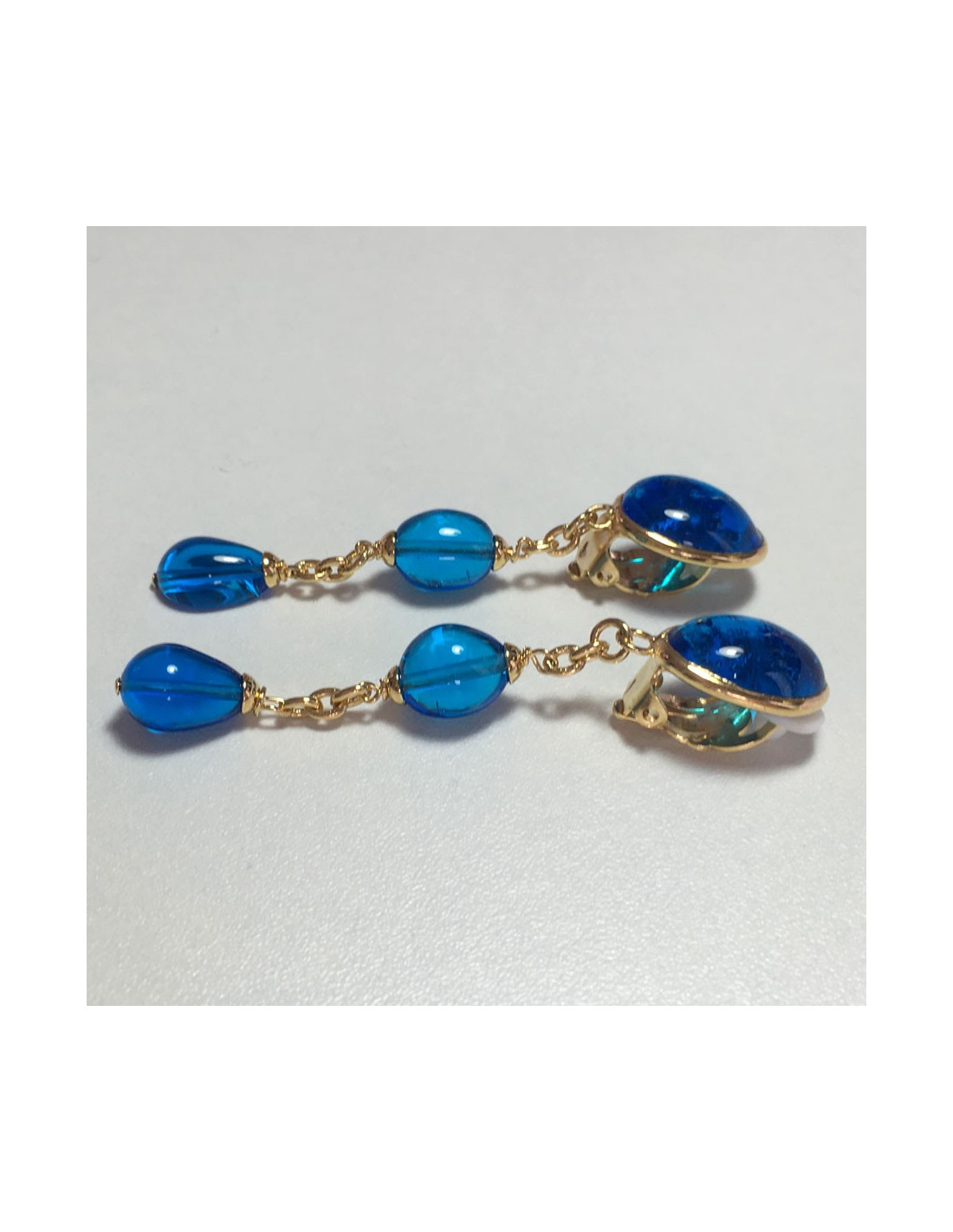 These clip-on earrings have never been worn. Dimensions: length 7.7 cm width 2 cm