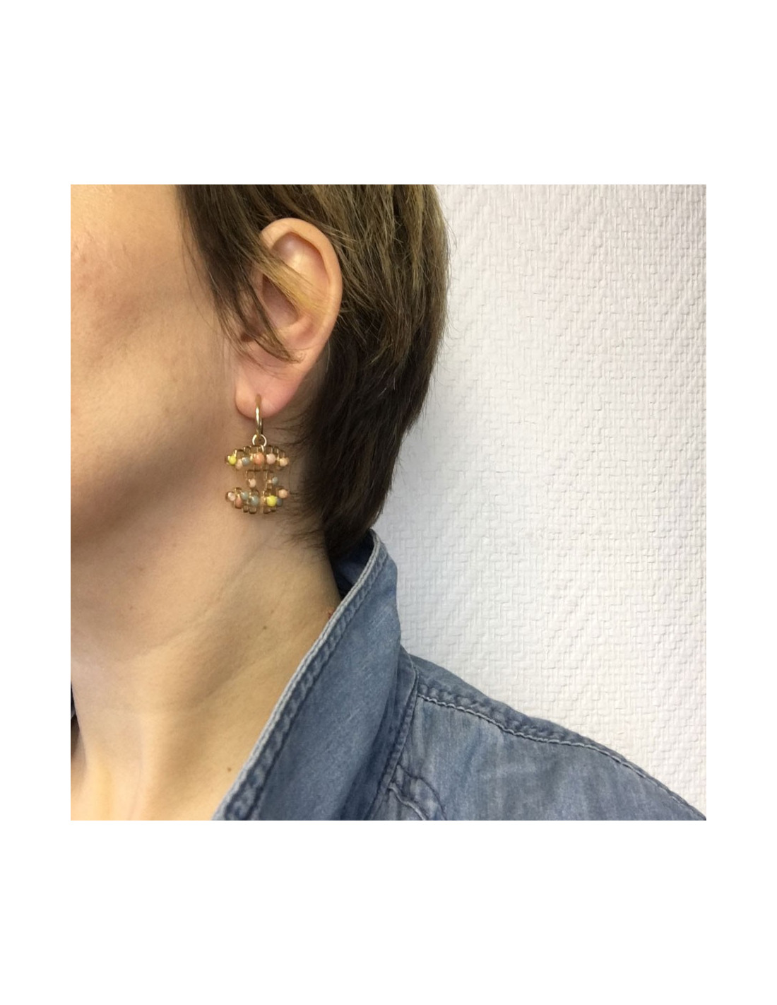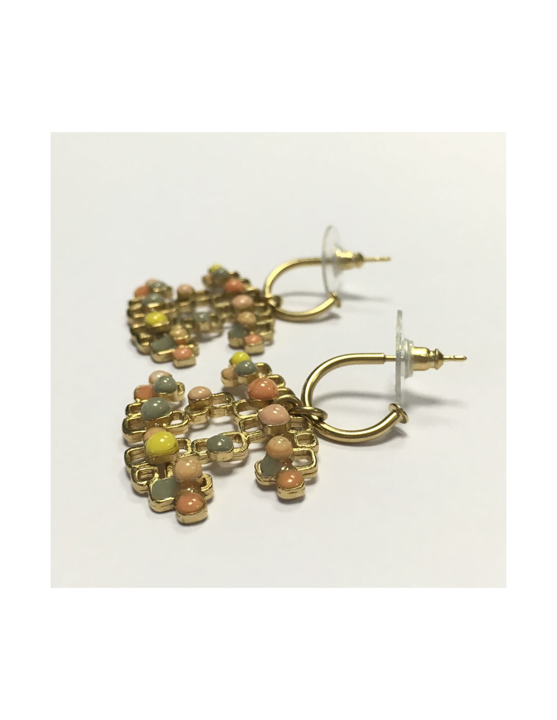 CC CHANEL Golden nails and multicolored glass earrings