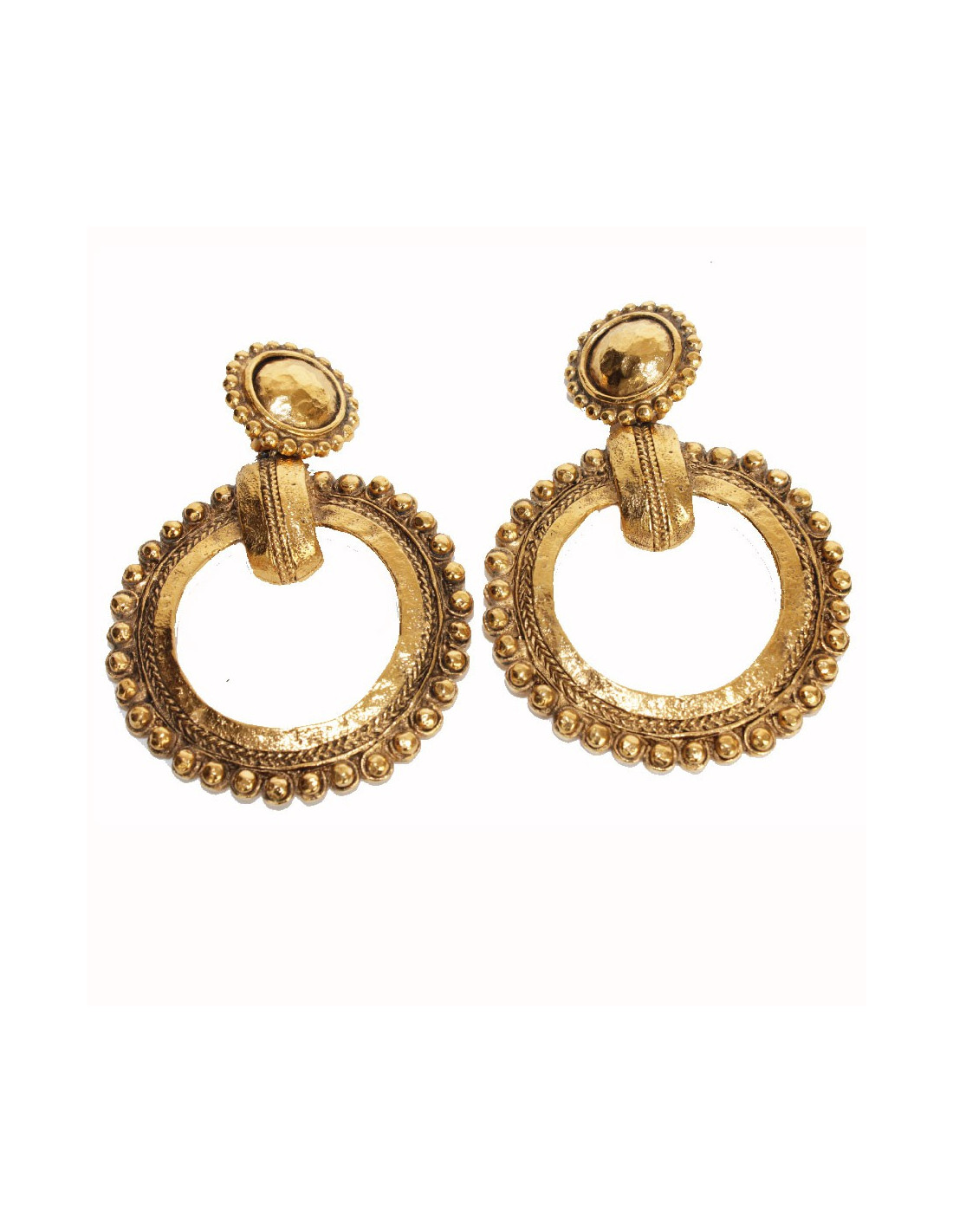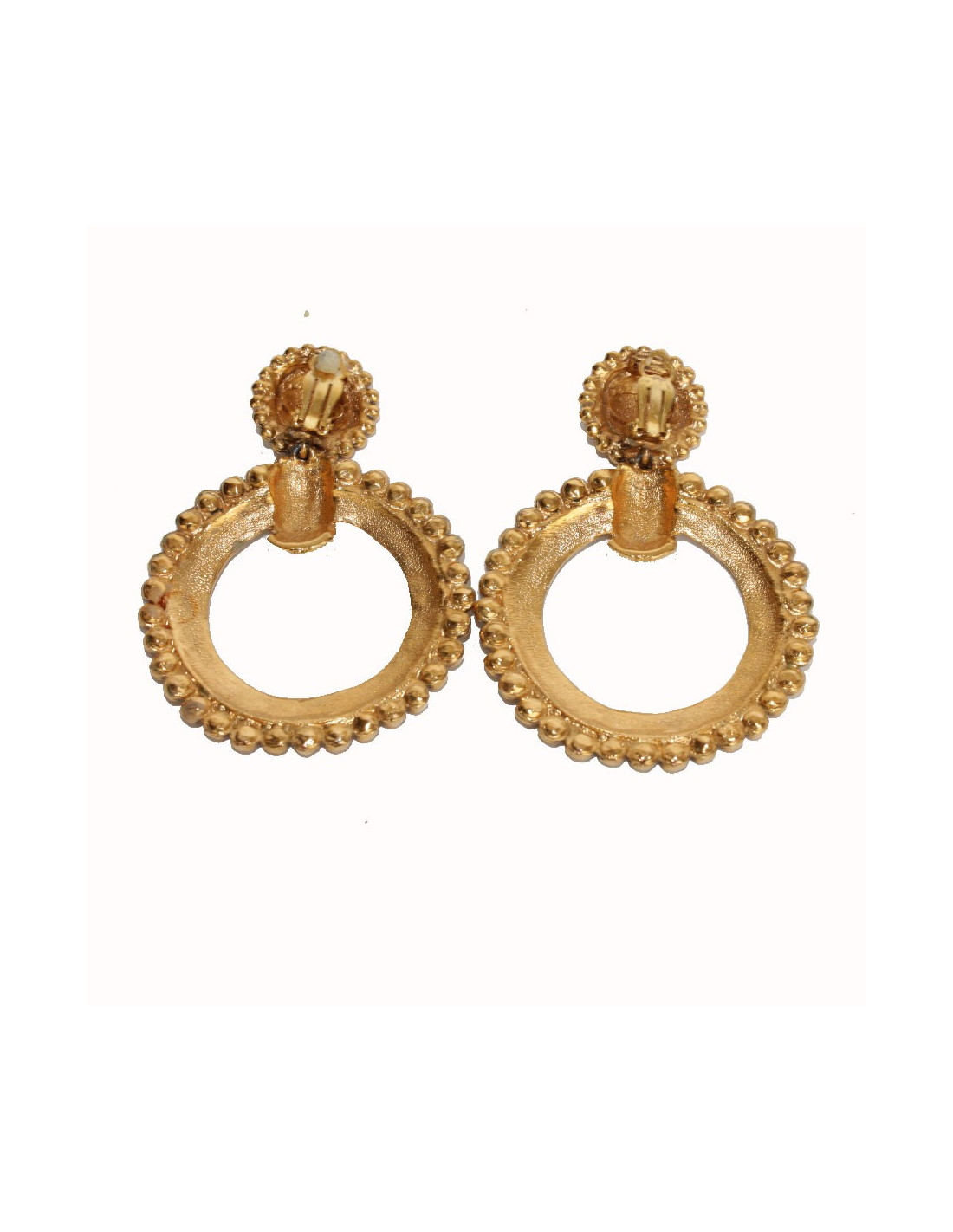 CHANEL Vintage dangling clip-on earrings in gilded, hammered metal