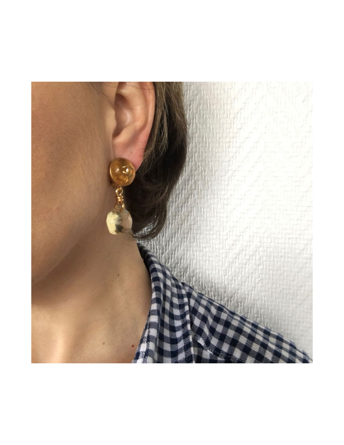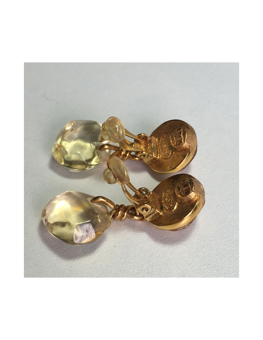 CHANEL clip-on earrings in gilded metal and amber resin