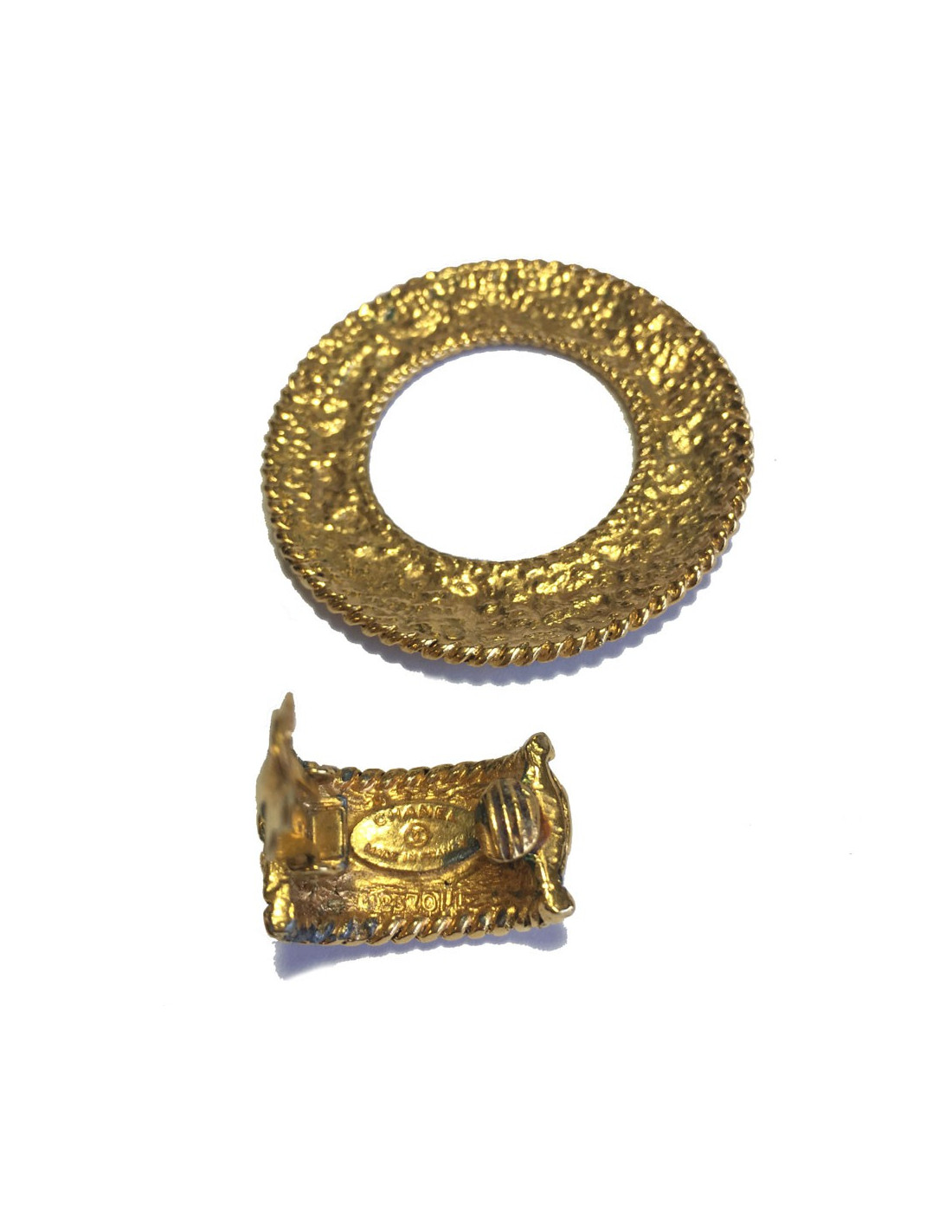 Last items in stock EARRINGS CHANEL vintage clip-on earrings in gilded metal and pearls CHANEL 20372 1,250.00 € Couture! vintage CHANEL clip-on earrings in gilded metal, pearls in the shape of pearly petals and black pearl in the center. Letter S engraved. It comes from press sales. Dimensions: diameter of clip-on earring : 4,5 cm Will be delivered in a Valois Vintage Paris Dustbag Add to cart