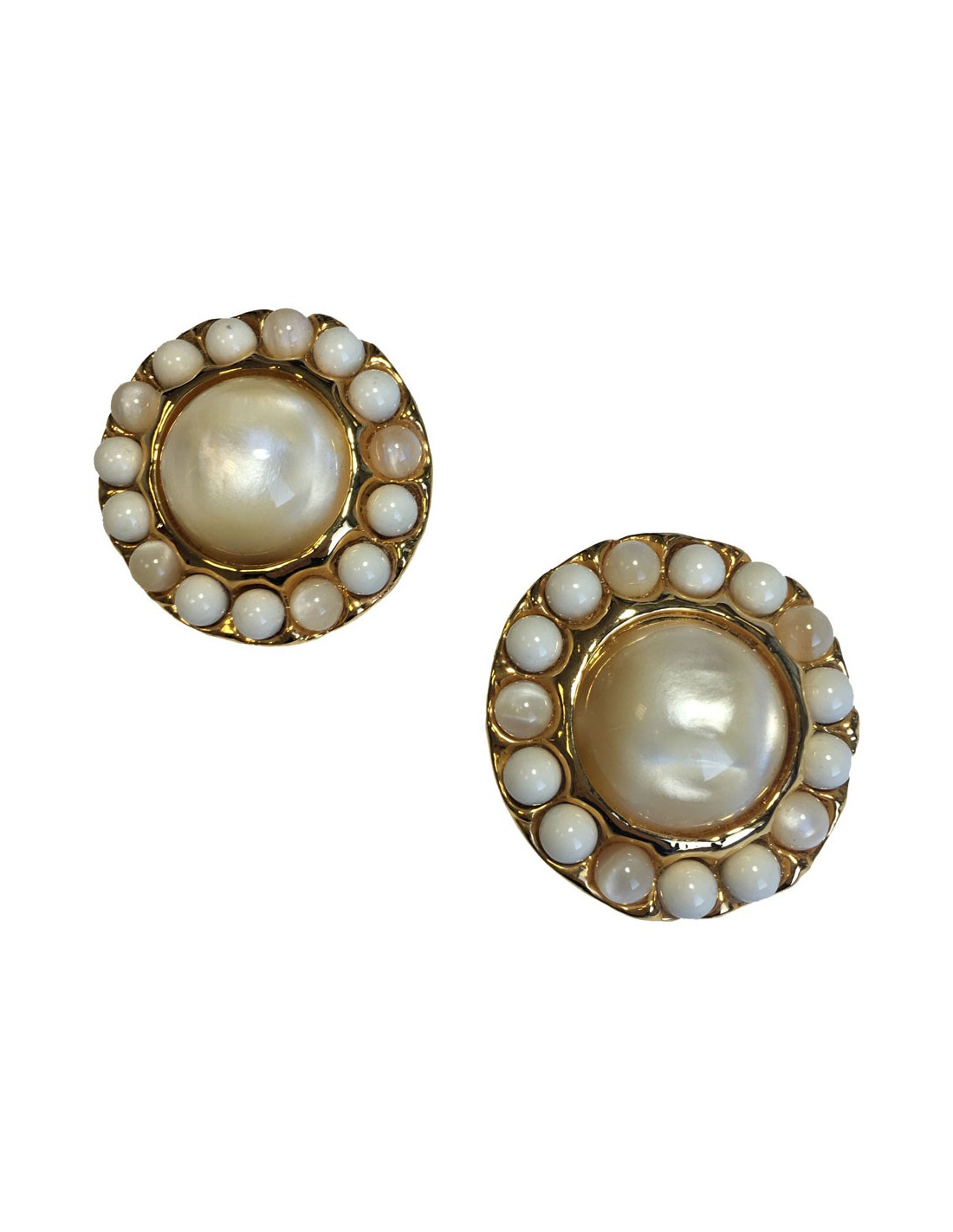 CHANEL Vintage Clip-on Earrings in Gilded Metal set with Pearls
