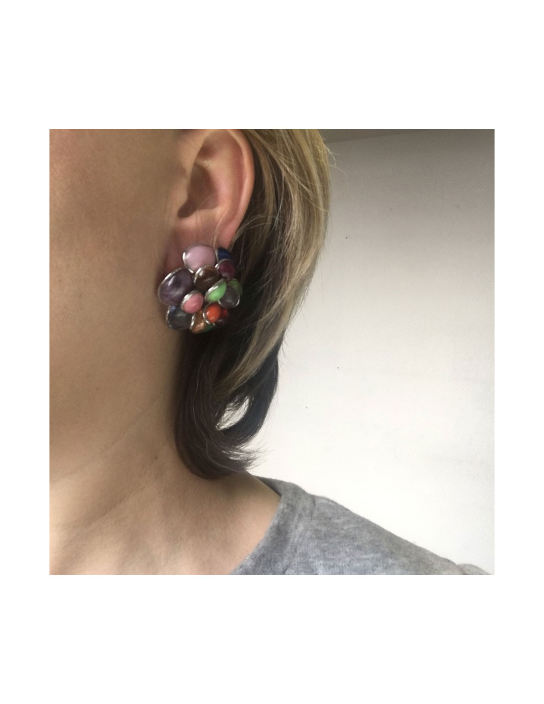 Last items in stock EARRINGS CHANEL vintage brown resin clip-on earrings CHANEL 25448 490.00 € CHANEL vintage couture brown clip-on earrings Condition : very goodMade in FranceMaterials : resin, metalColors : brownModel : clip-on earringsMeasurements : diameter 2 cmHardware : gold plated metalStamp : yesYear : 1986Details : iridescent brown resin cabochon Add to cart