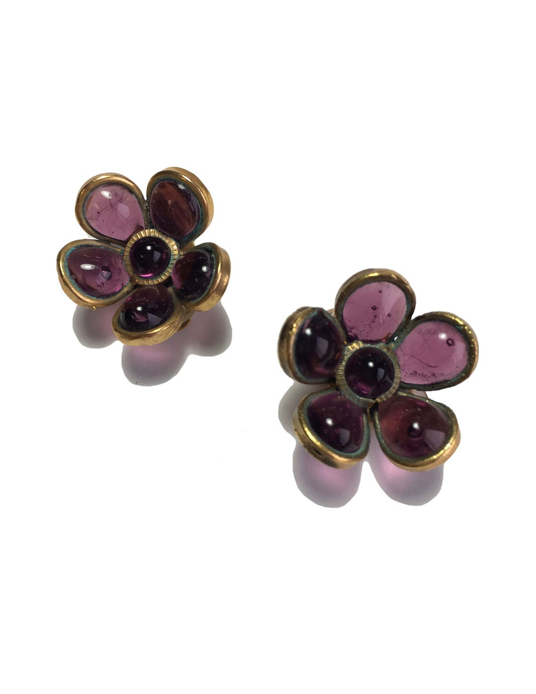 Last items in stock EARRINGS CHANEL Vintage Flower Clips in Gilt Metal CHANEL 28375 3,250.00 € Collector CHANEL flower clips Condition: goodMade in FranceMaterial: gold-plated metal, mother-of-pearlColor: gold, mother-of-pearlDimensions: diameter 6 cmHardware: gold-plated metalStamp: yesYear: 80sDetails : Clip earrings from the 80s, each representing an imposing daisy, with fine-gold petals and a pearly daisy in the heart. A rare collector's item.... Add to cart
