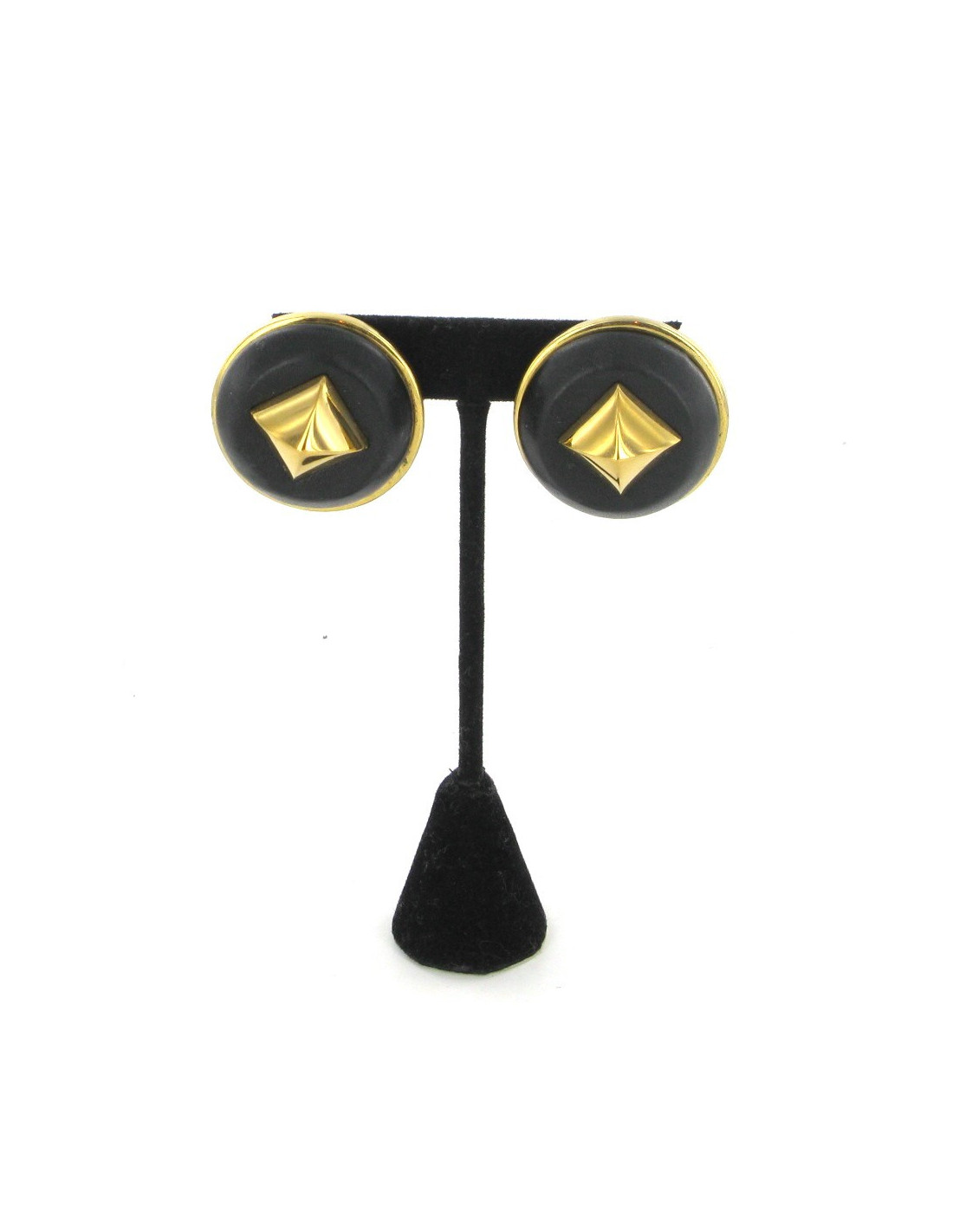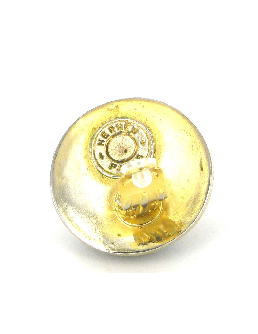 HERMES vintage 'Médor' clip-on earrings in gold plate metal and black leather
