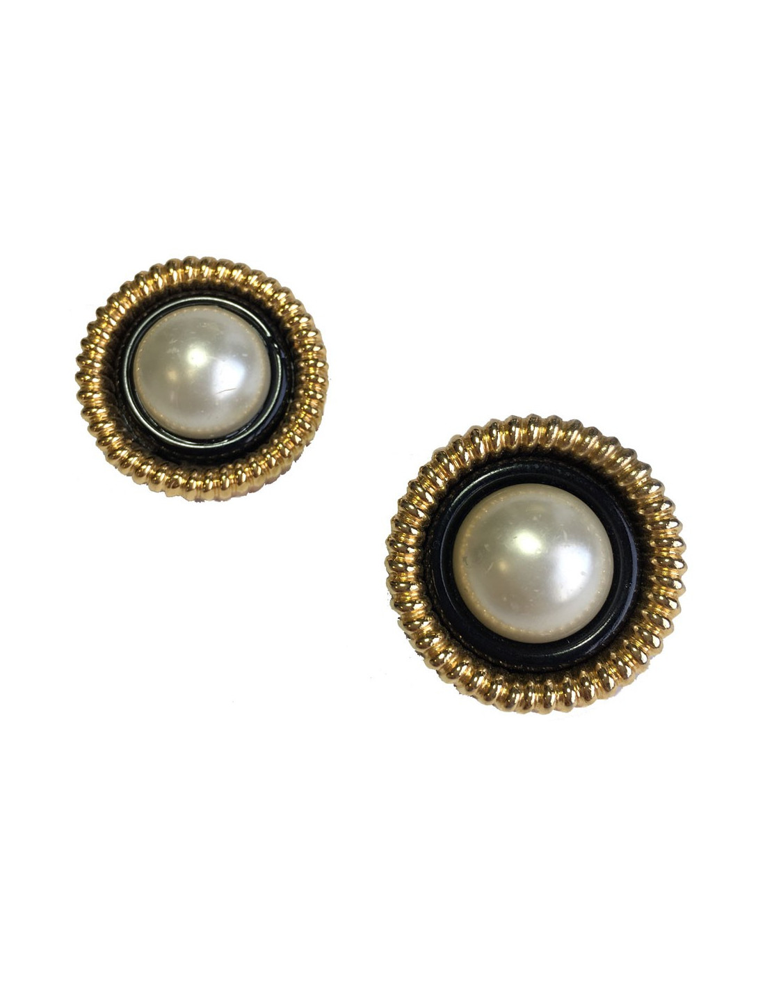 CHANEL Couture Vintage Clip-on Earrings in Gilt Metal and Pearl