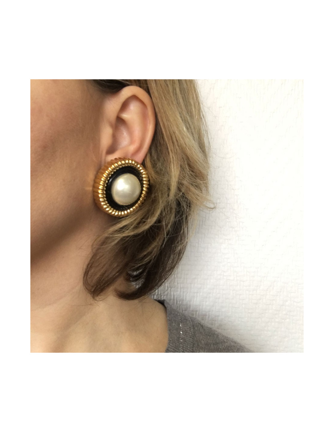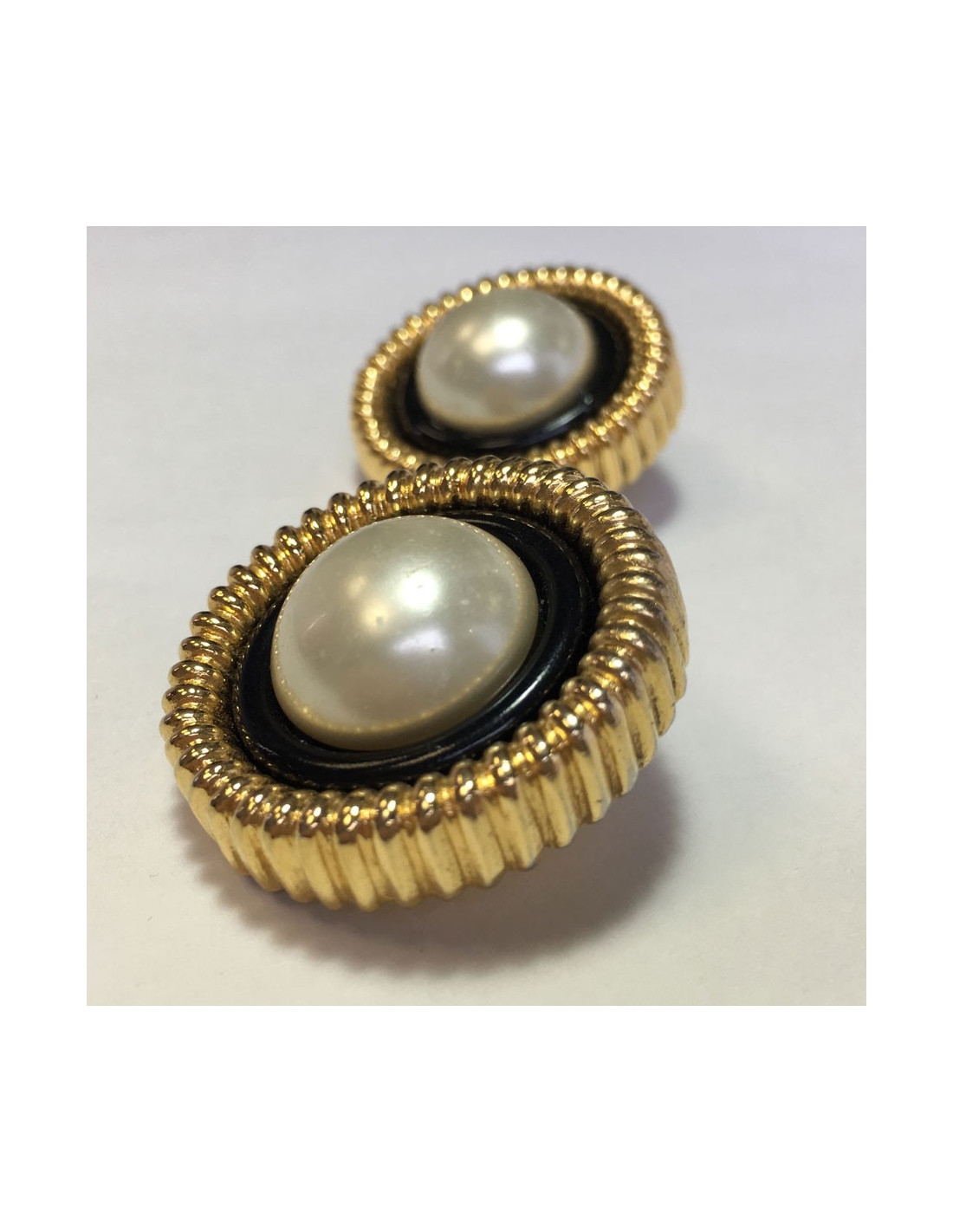 Chanel Couture clip-on earrings, in gilded metal and a pearl in the center.