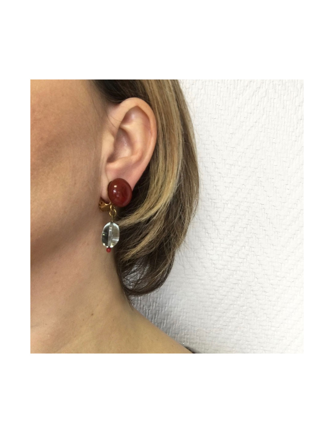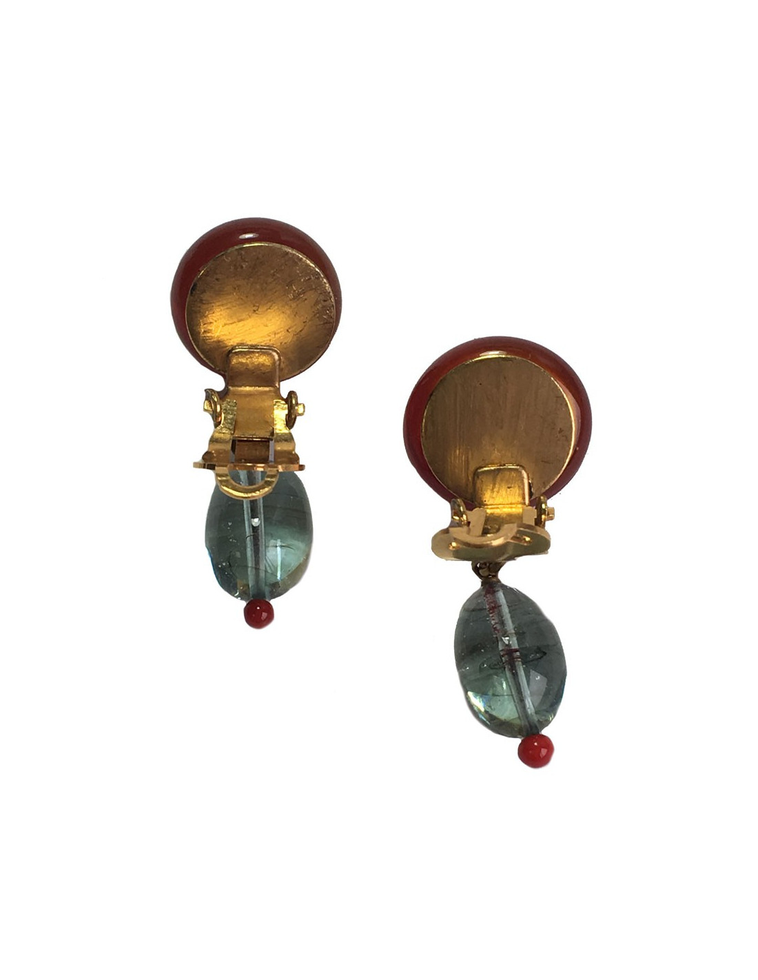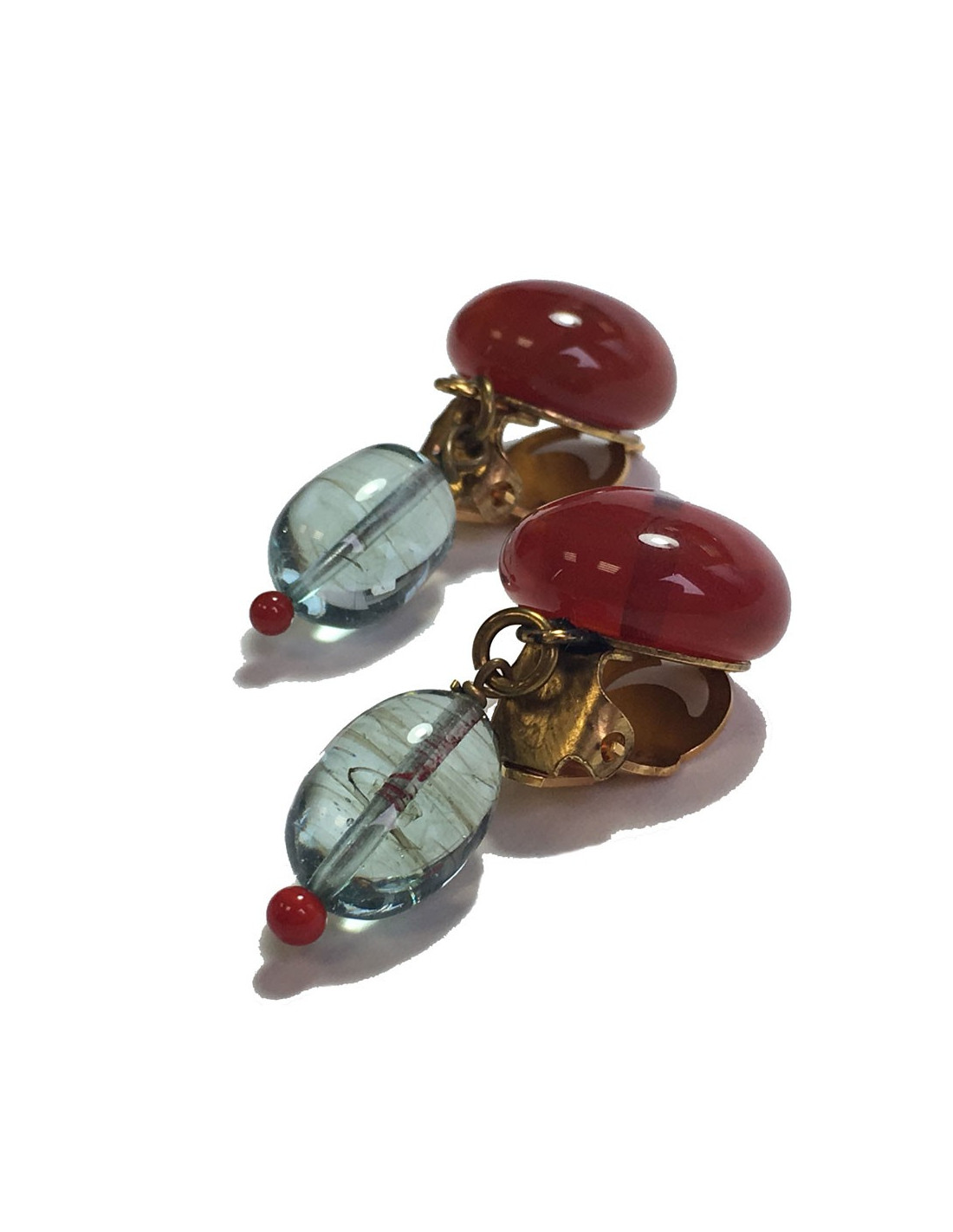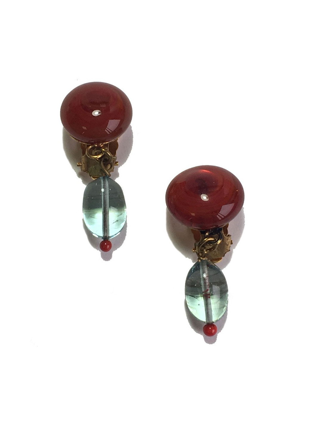 Boucles d'oreille clips MARGUERITE DE VALOIS en pâte de verre rouge et bleu très clair