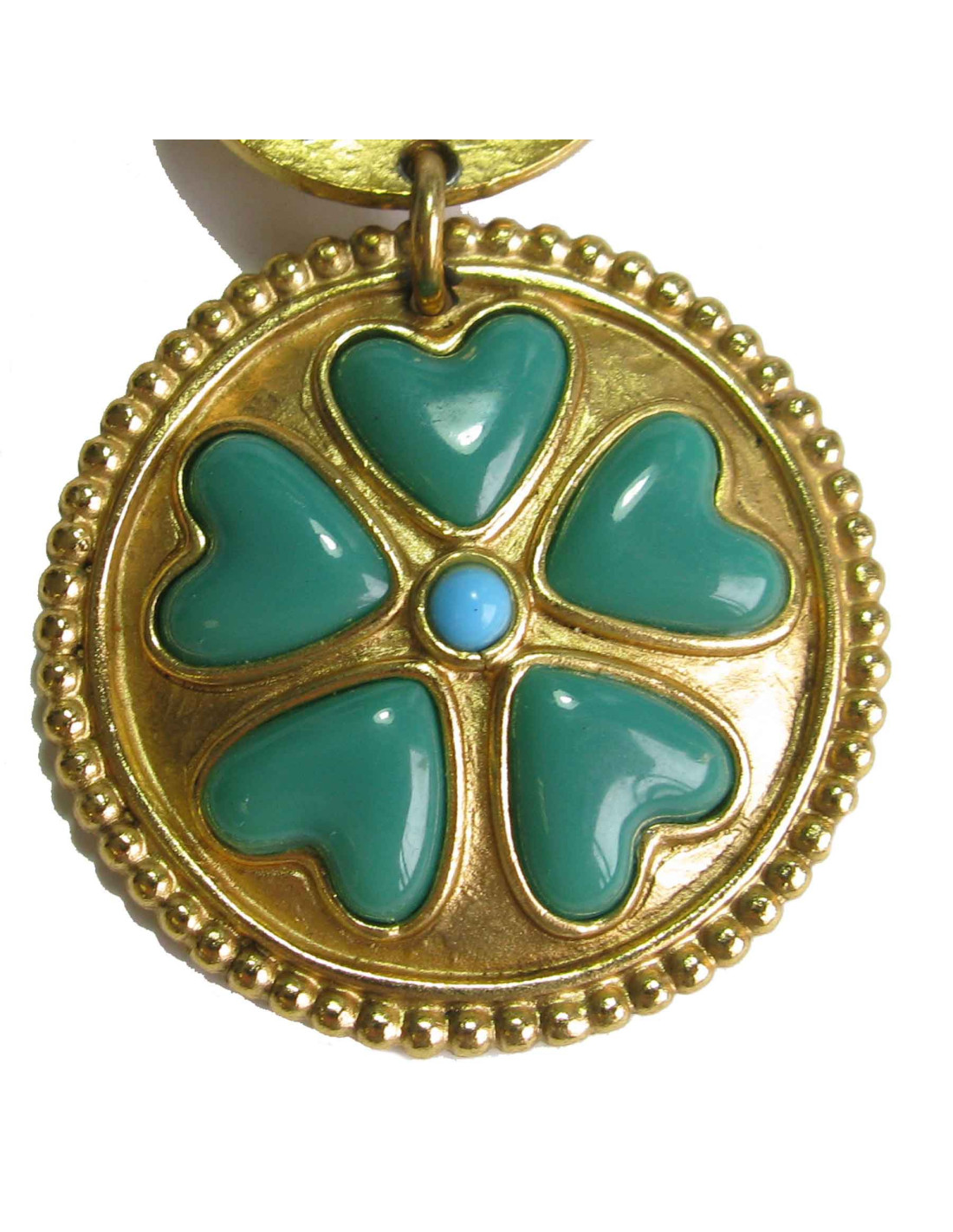 Last items in stock EARRINGS CHANEL Vintage amber clover clip-on earrings CHANEL 31928 990.00 € CHANEL Vintage amber clover clip-on earrings Condition : goodMade in FranceModel : Clip-on earringsMaterial : metal, Colors : gold, topaze/amberMeasurements : diameter 3,5 cmstamp: noYear: 1990 Add to cart