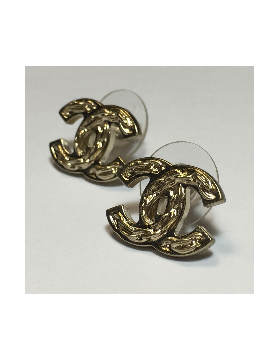 CHANEL CC stud earrings pattern embossed chain in gilded metal