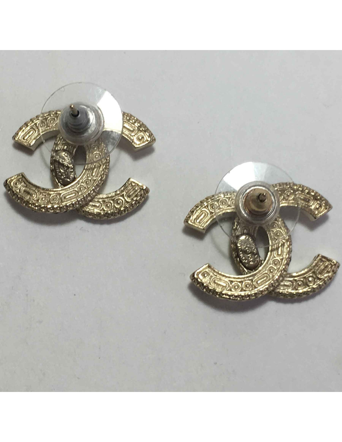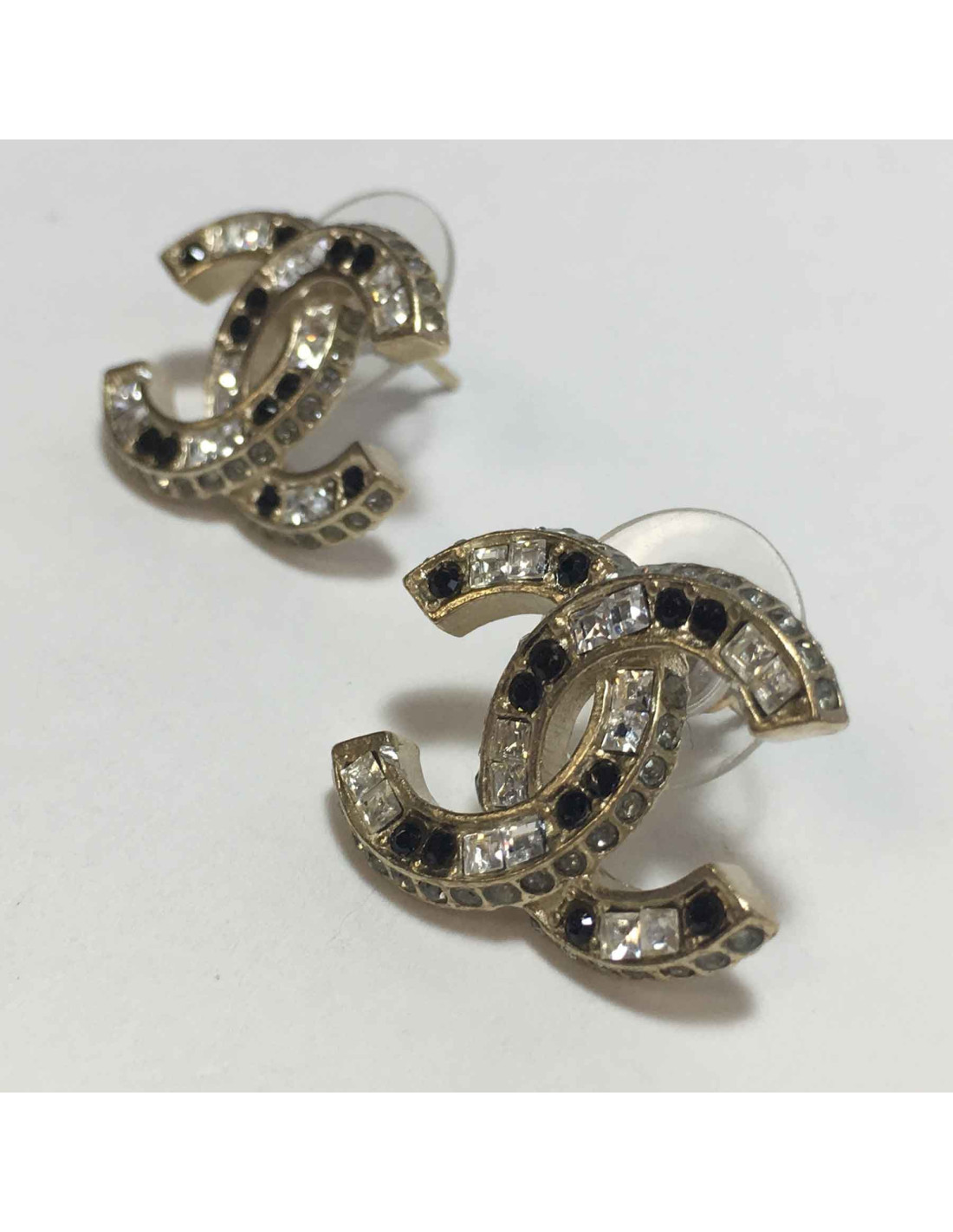 CHANEL CC stud earrings in gilded metal and bicolor rhinestones