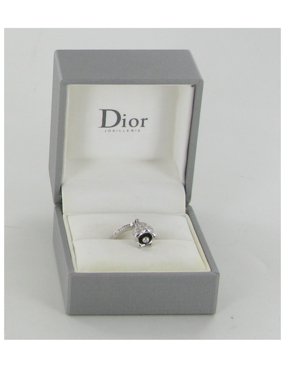 Ring T51, "DIOR Joaillerie", Collection "Muguet" white gold 18K diamonds. The House DIOR created this ring in 2001. We have 0.25 carats of diamonds around. The flower is articulated. Supplied in the original sealed "DIOR Joaillerie" box.