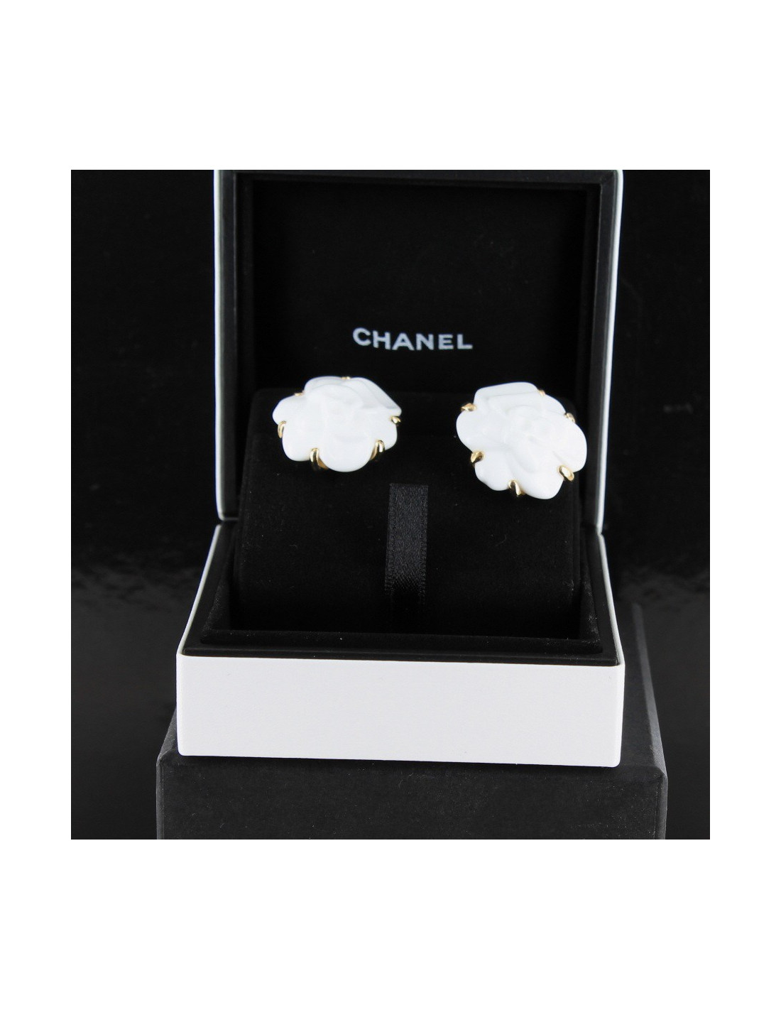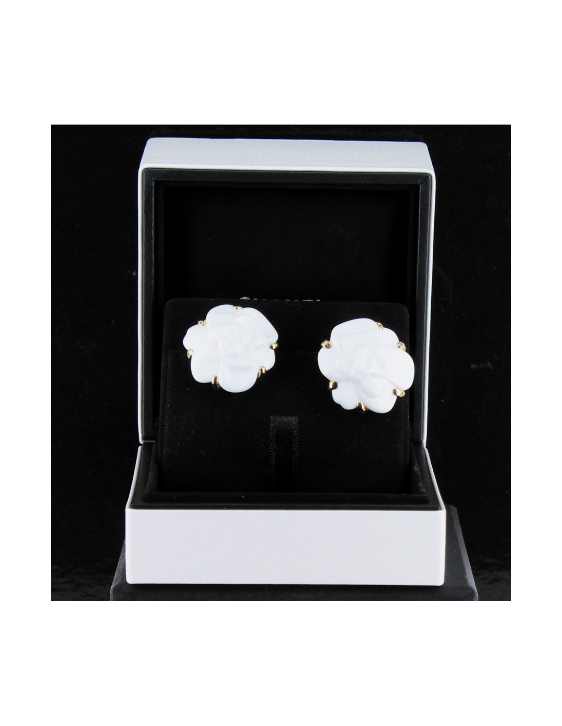 Clips camellias CHANEL white agate earrings yellow gold
