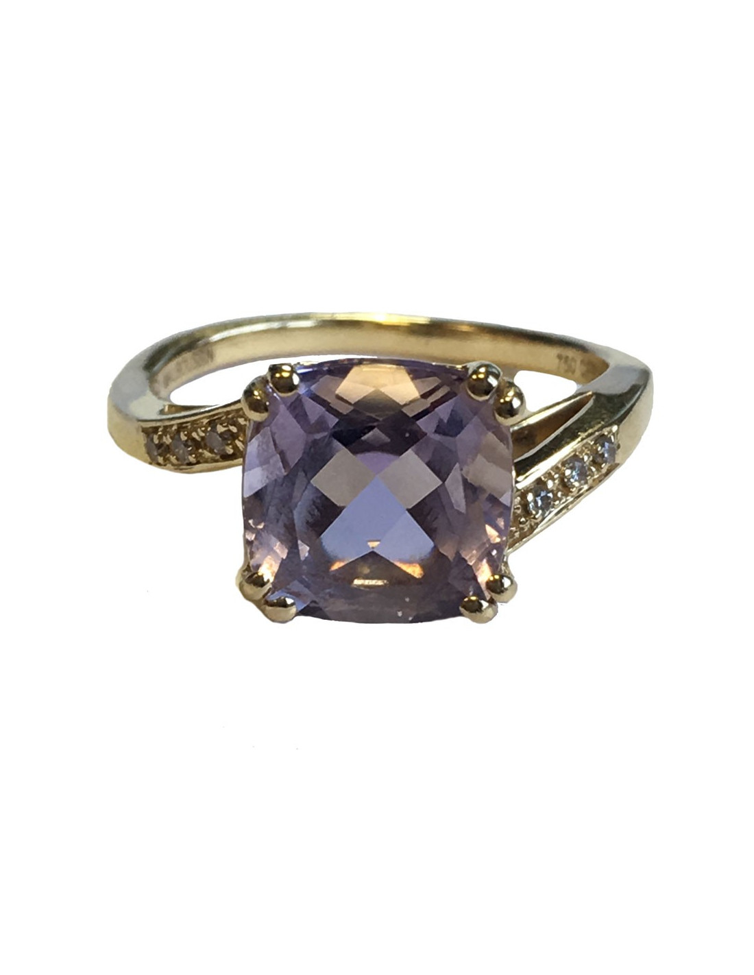 Ring MAUBOUSSIN, "Love hangover" clear amethyst and yellow gold, diamond paving. Amethyst size: cushion < /.p >