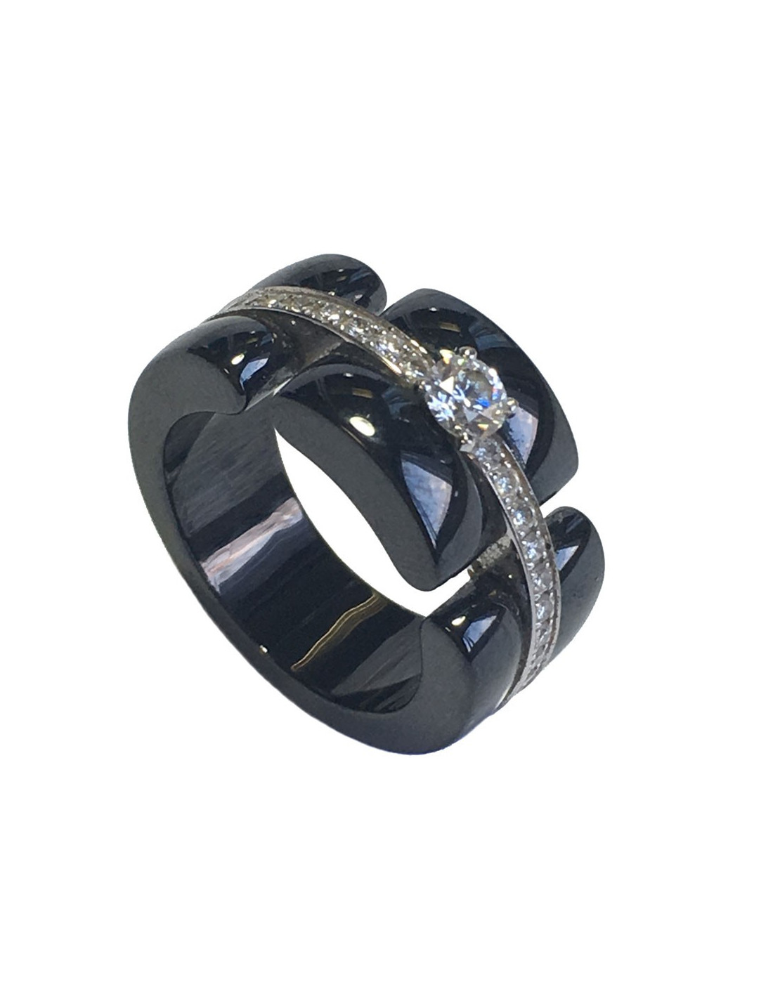 CHANEL ring, 'Ultra'model in 18 carat white gold, black ceramic and diamonds