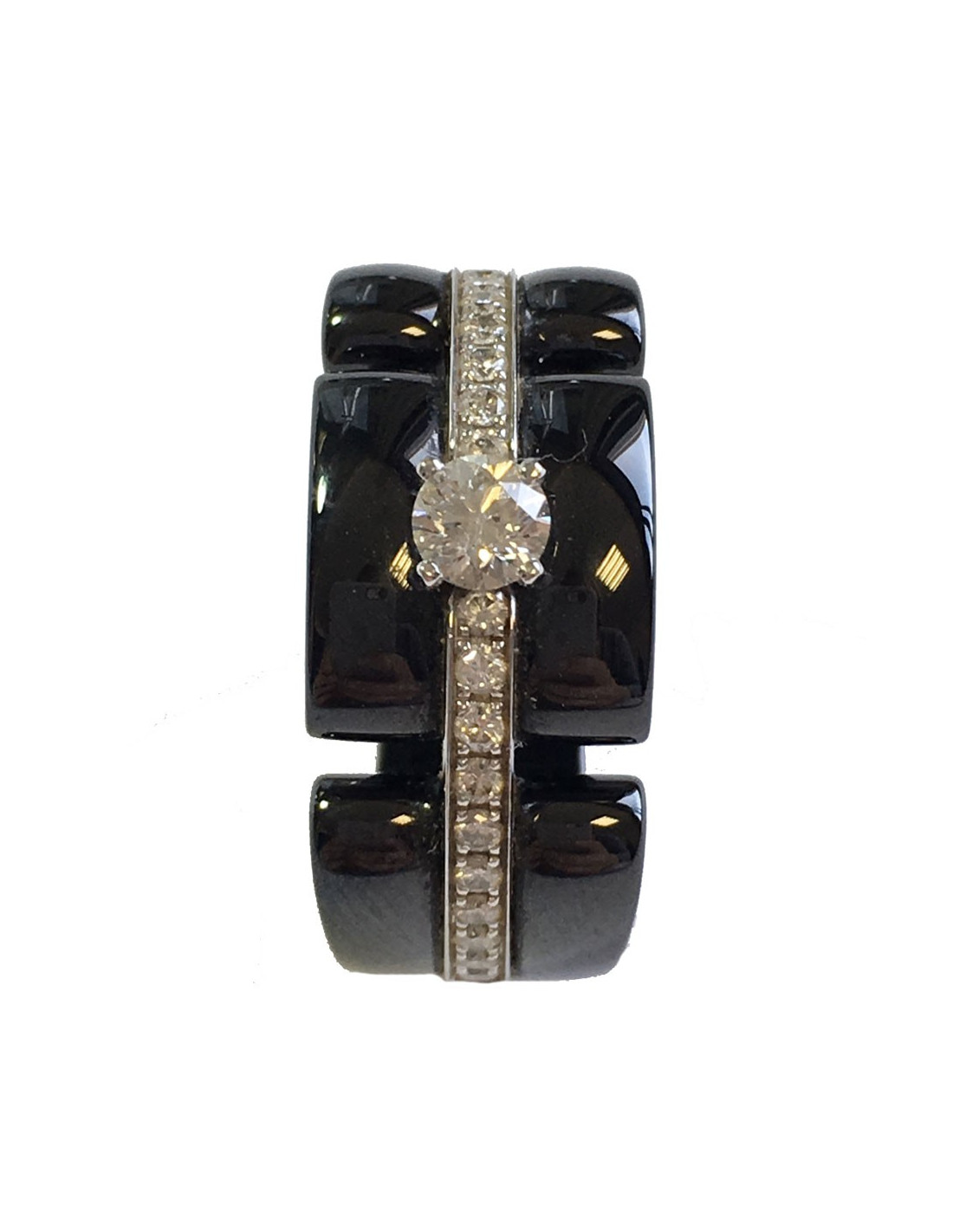 Very beautiful Chanel ring, model "Ultra" in 18 carat white gold, black ceramic and diamonds including a larger one in the center. Medium model. Size 51