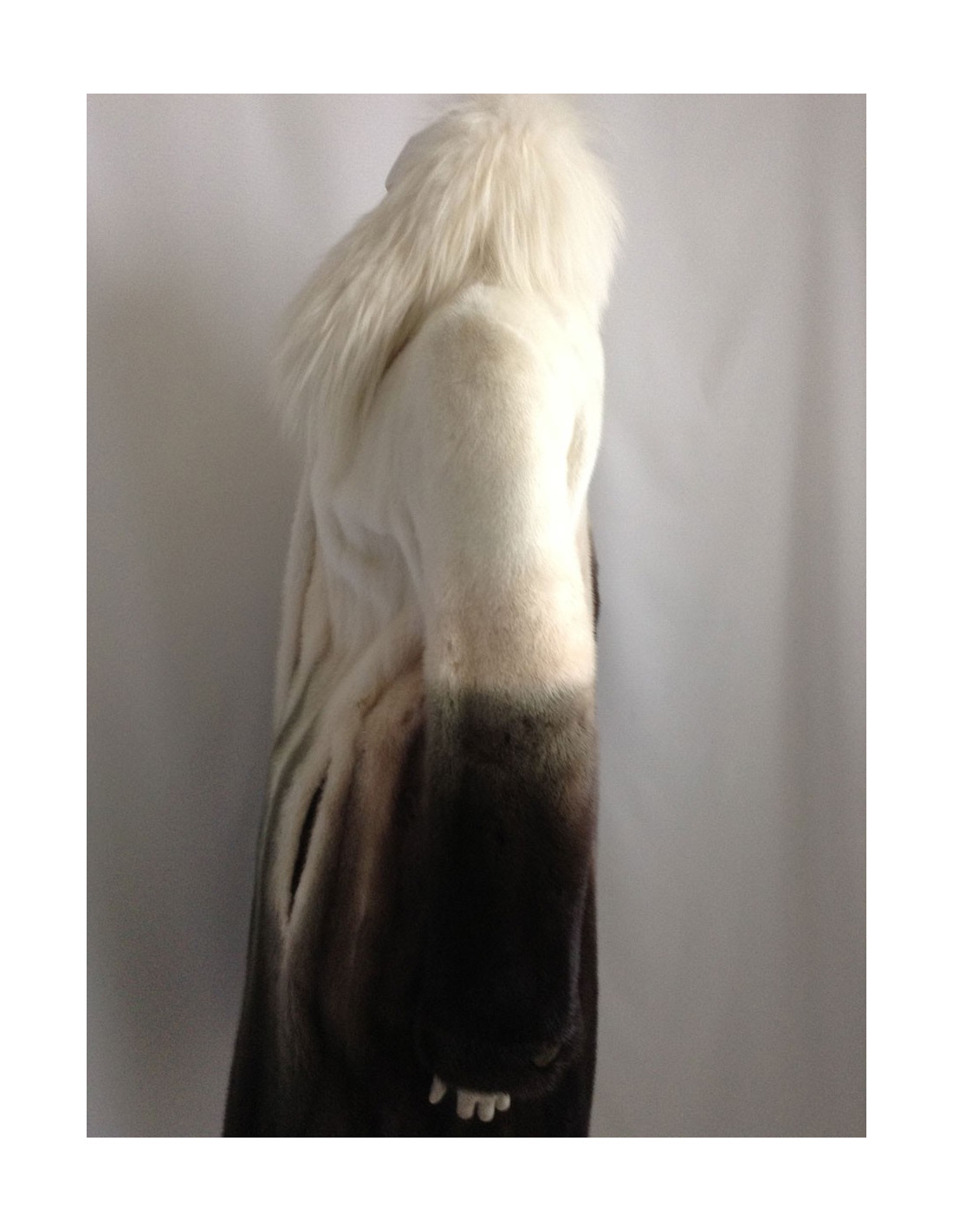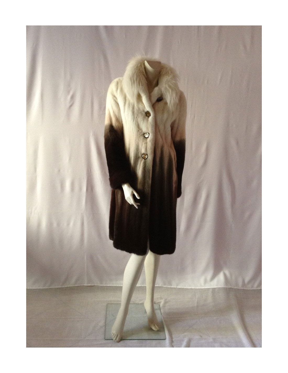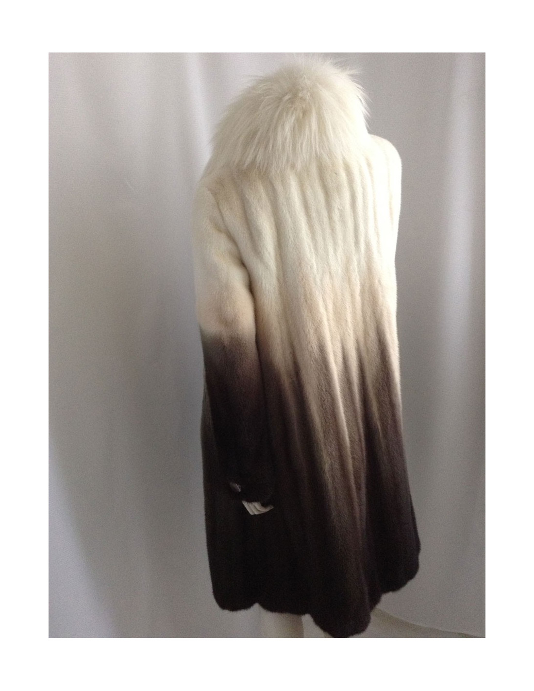 Beautiful coat Céline mink 100%. A very pretty piece. The white collar is Fox; the colors have been harmoniously selected: Brown, Khaki, beige, off-white; the gradient is SUBLIME! The lining is silk 100% Brown monogrammee Céline, THE MUST HAVE!