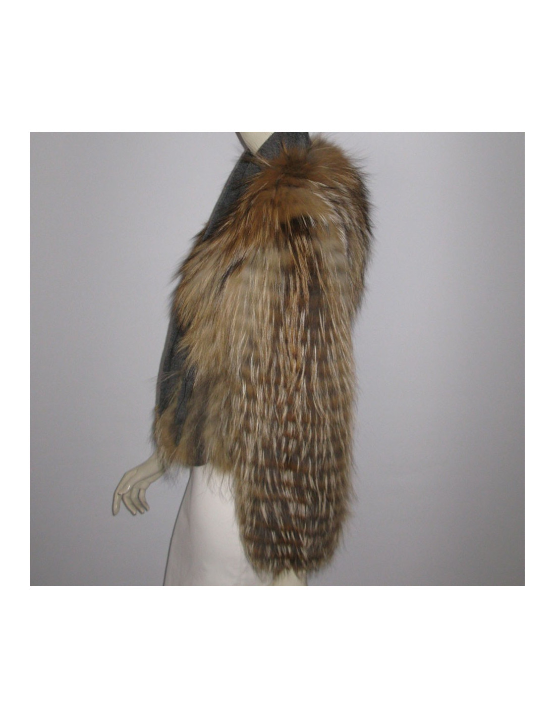 We Love! Jacket "245 SAINT HONORÉ" short reversible: Fox Fur and cashmere. Shawl collar grey cashmere and the front closure. Closing cross by a clamping link. slotted pockets on the rated size. 38fr 100% Fox.