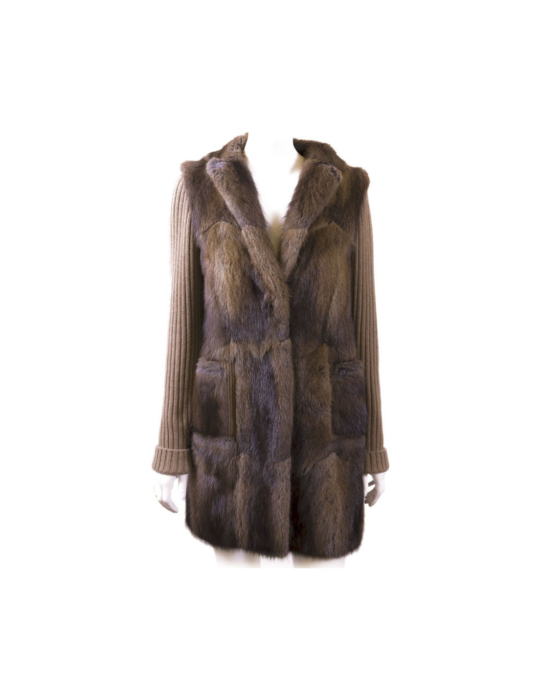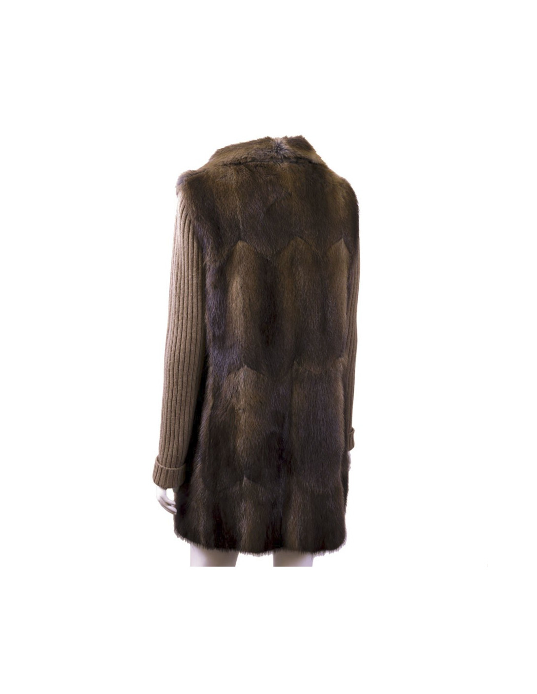 Chloe coat in Muskrat fur and Tan cashmere/silk knit,