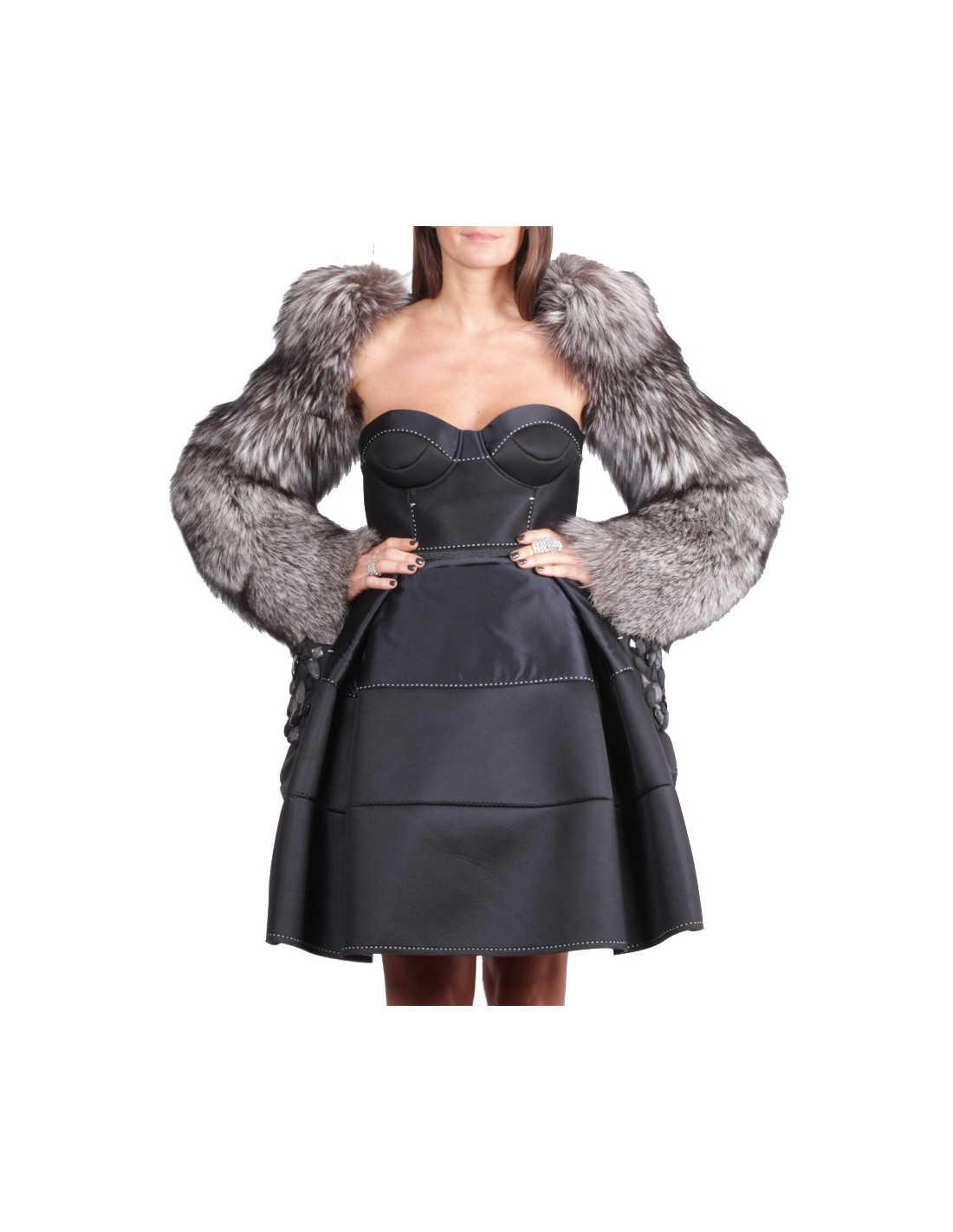 Gorgeous Paule KA Silver Fox sleeves with shoulder pads are doing way bolero, they get tied up in the back. Size 36 en