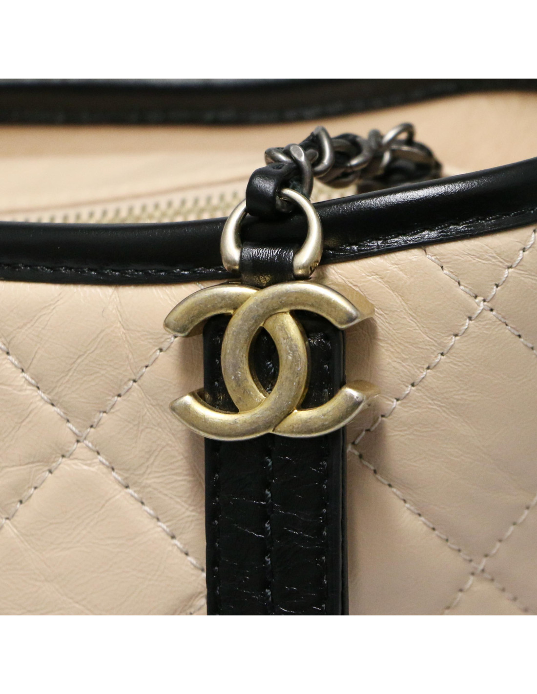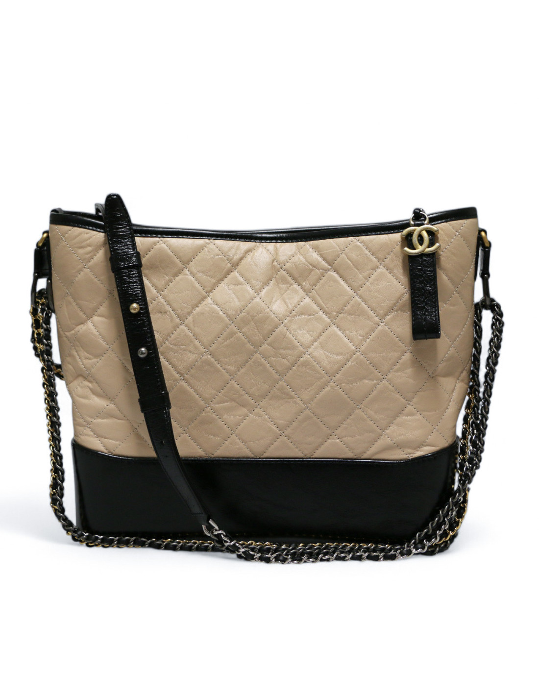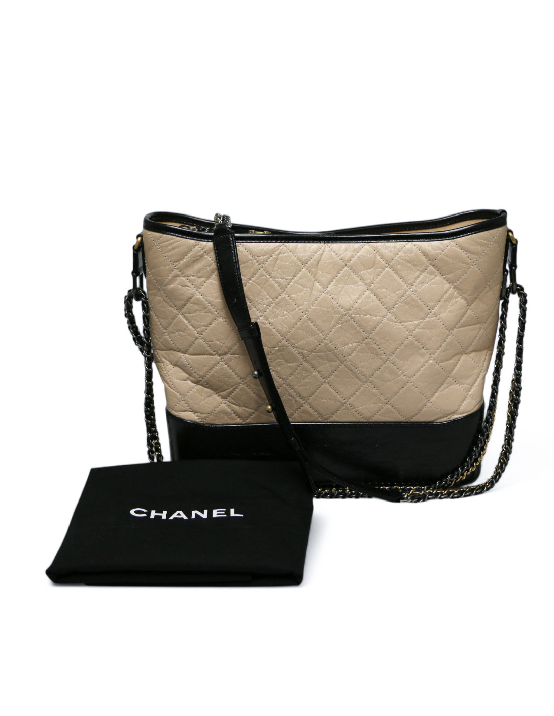 Last items in stock Gabrielle Chanel Gabrielle CHANEL two-toned mini bag CHANEL 34555 3,800.00 € CHANEL white mini Gabrielle bag Condition : goodMade in FranceCollection : GabrielleMaterials: leather, metalLining: red fabricColors : black, whiteMeasurements : 20 x 15 x 7 cmShoulder strap : simple 145 cm, double 86 cmHologram : 2416...Authenticity card : noYear: 2017-2018 Hardware : silver, aged silver and gold finish metalDetails : tiny traces are... Add to cart