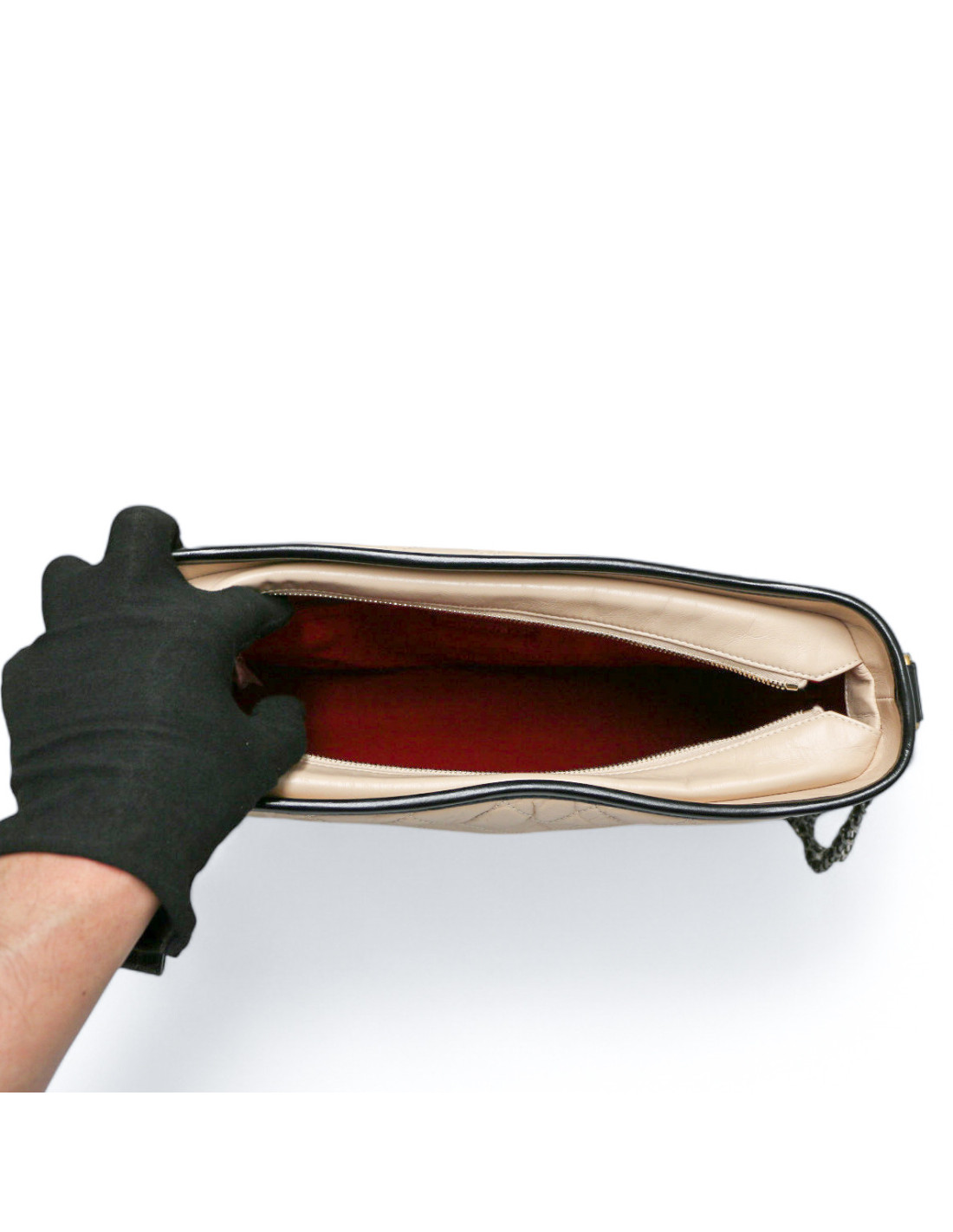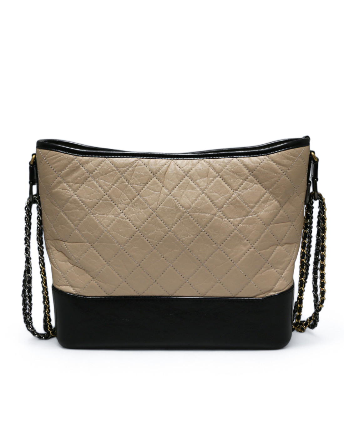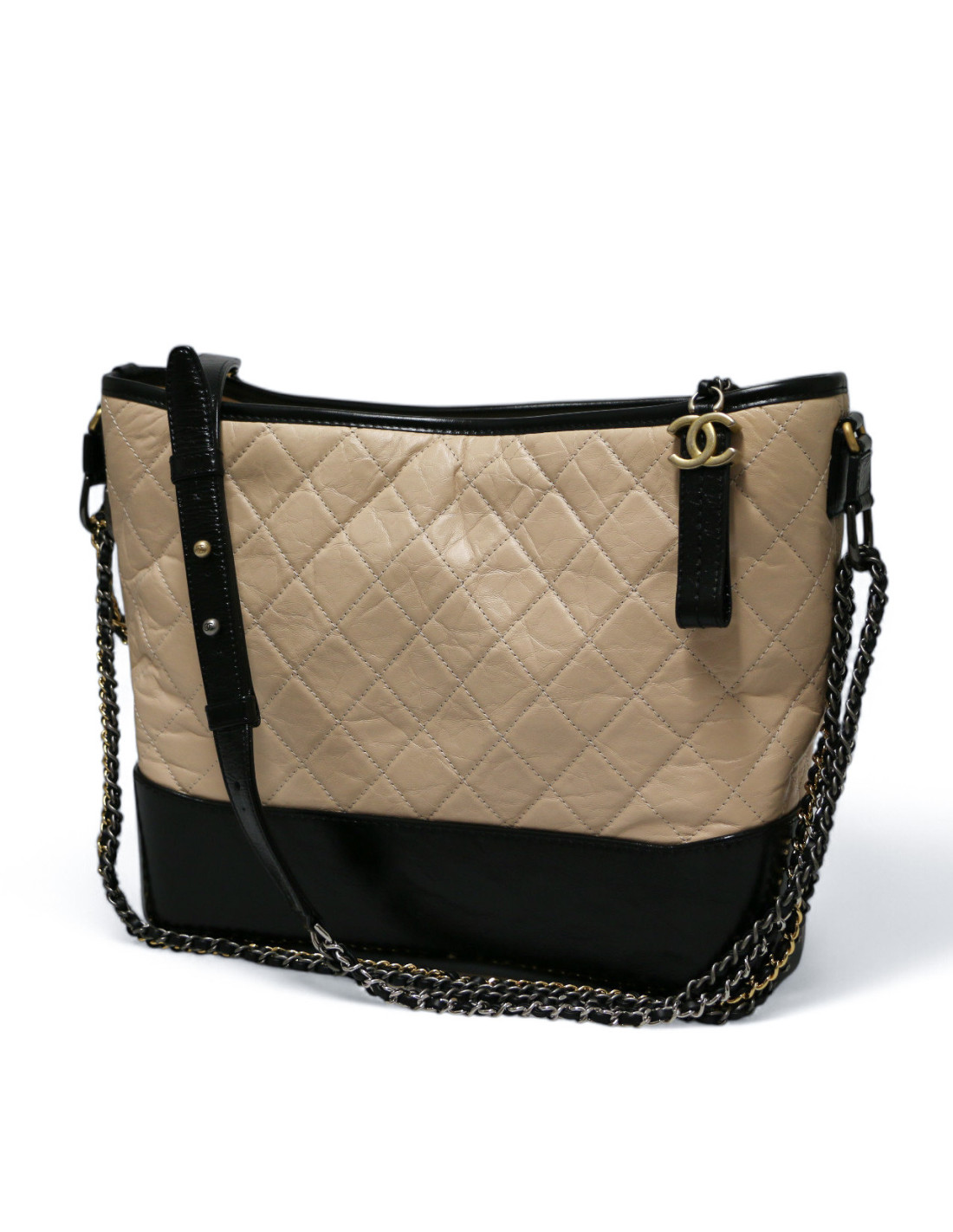 Last items in stock Gabrielle Chanel Gabrielle CHANEL two-toned mini bag CHANEL 34555 3,800.00 € CHANEL white mini Gabrielle bag Condition : goodMade in FranceCollection : GabrielleMaterials: leather, metalLining: red fabricColors : black, whiteMeasurements : 20 x 15 x 7 cmShoulder strap : simple 145 cm, double 86 cmHologram : 2416...Authenticity card : noYear: 2017-2018 Hardware : silver, aged silver and gold finish metalDetails : tiny traces are... Add to cart