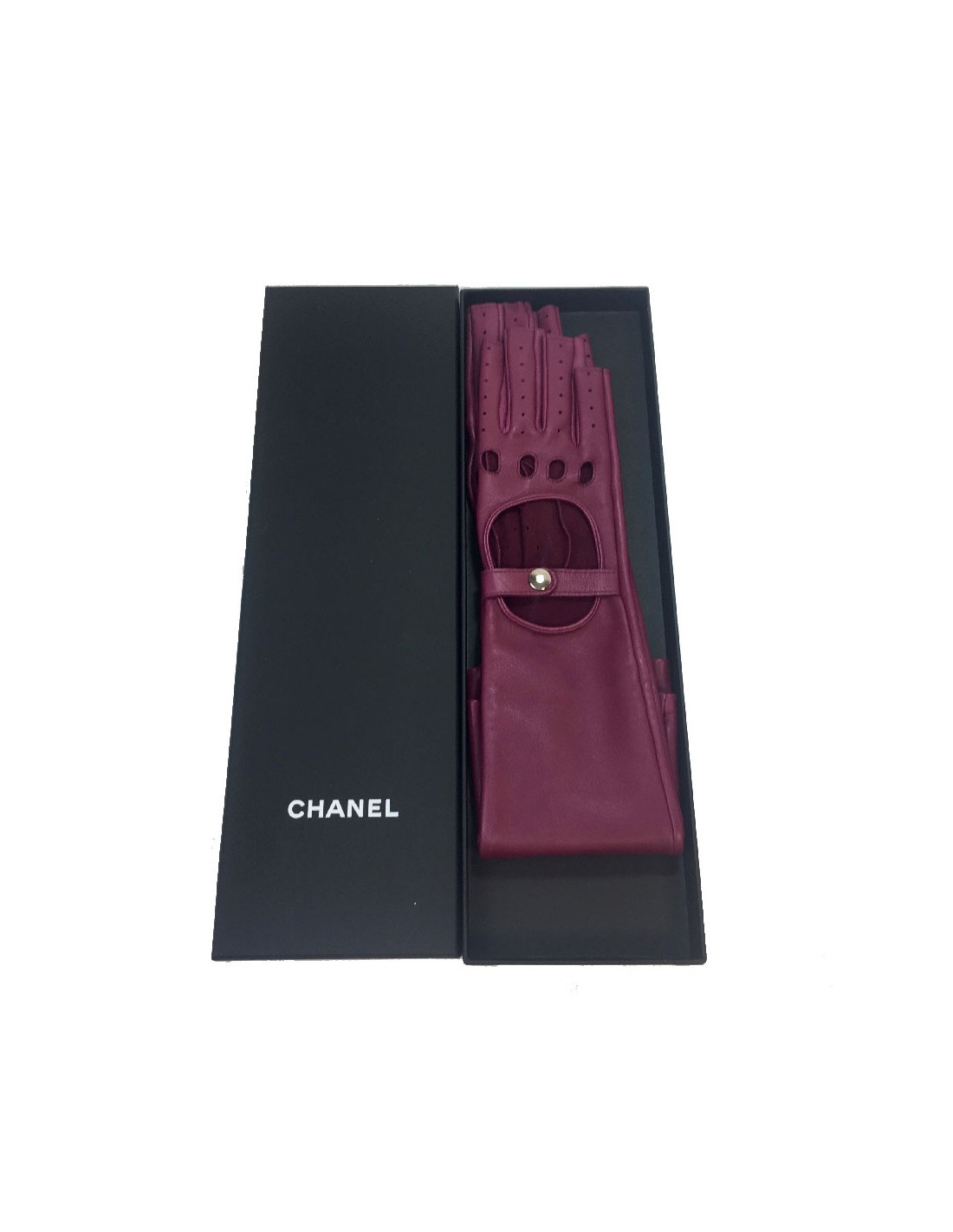 Beautiful long Chanel mittens in fuchsia lamb leather. CC snap fastener