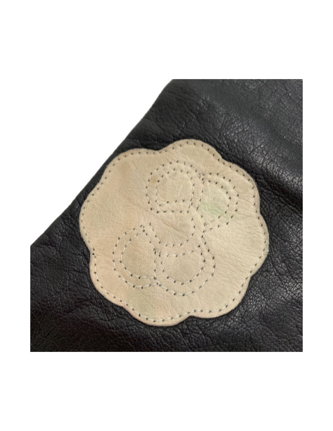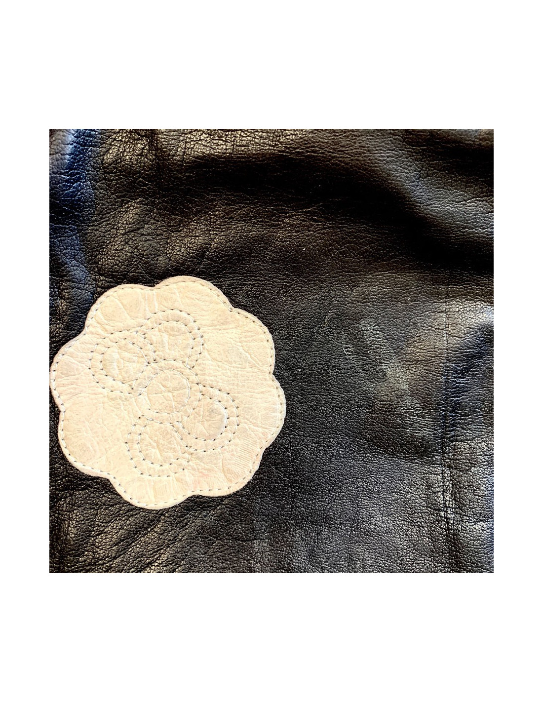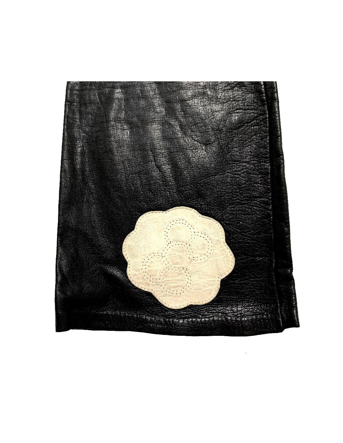 CHANEL white camellias and black lambskin gloves, details