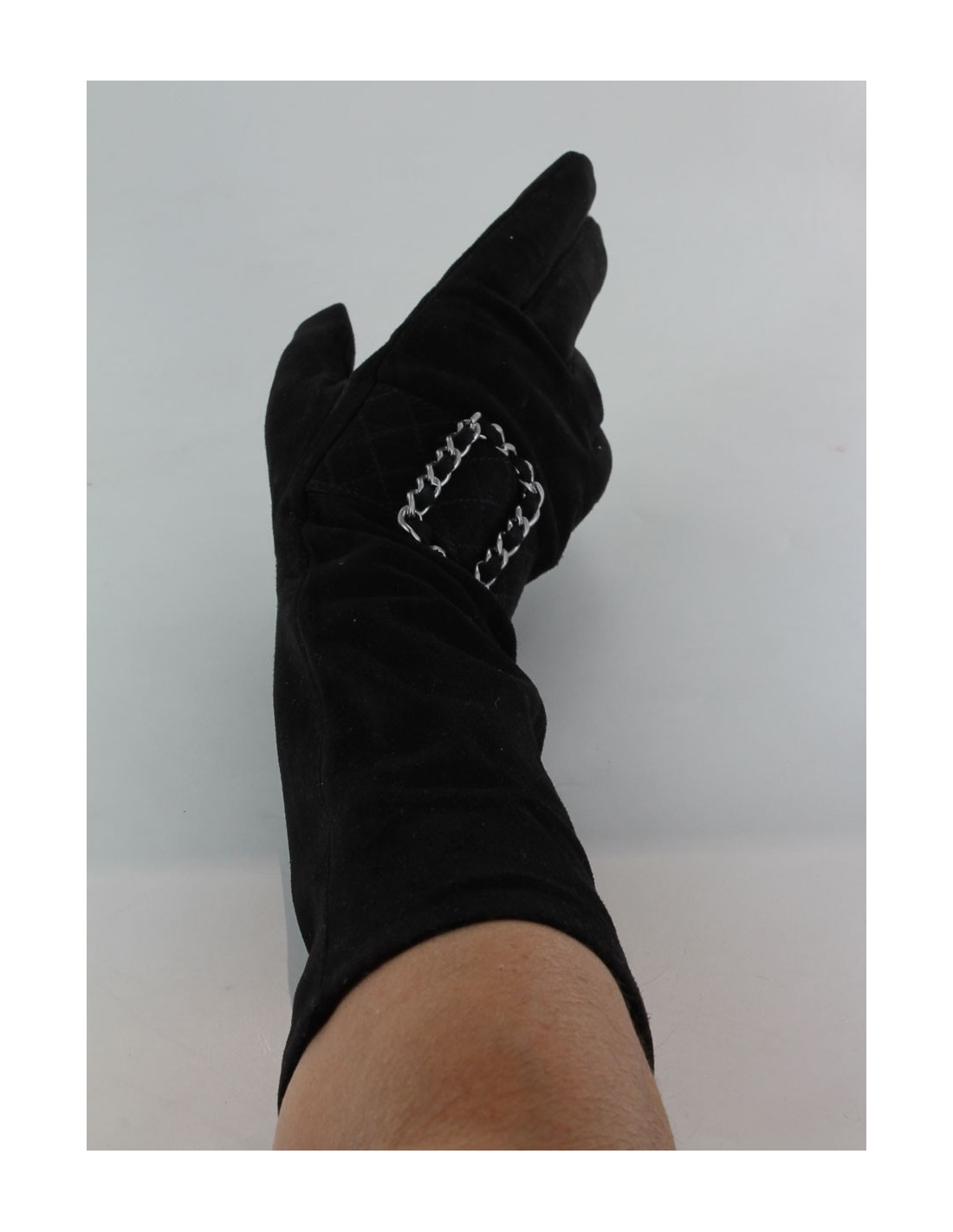 Elegant pair of shoulder-length gloves, Chanel Black Suede, size 7.