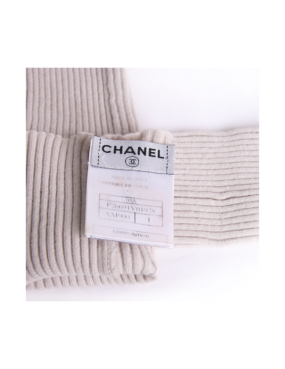 Chanel, size 1 in wool and viscose beige sleeves. Ideal to keep your arms warm, they will be able to serve you in all seasons. Small logo metal money signed Chanel at the end of the 2 sleeves. Very good condition