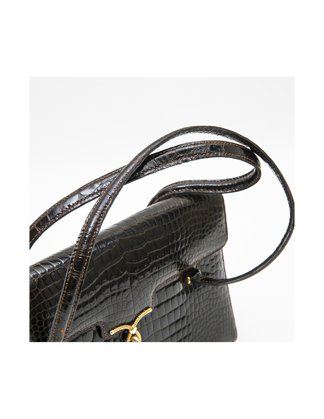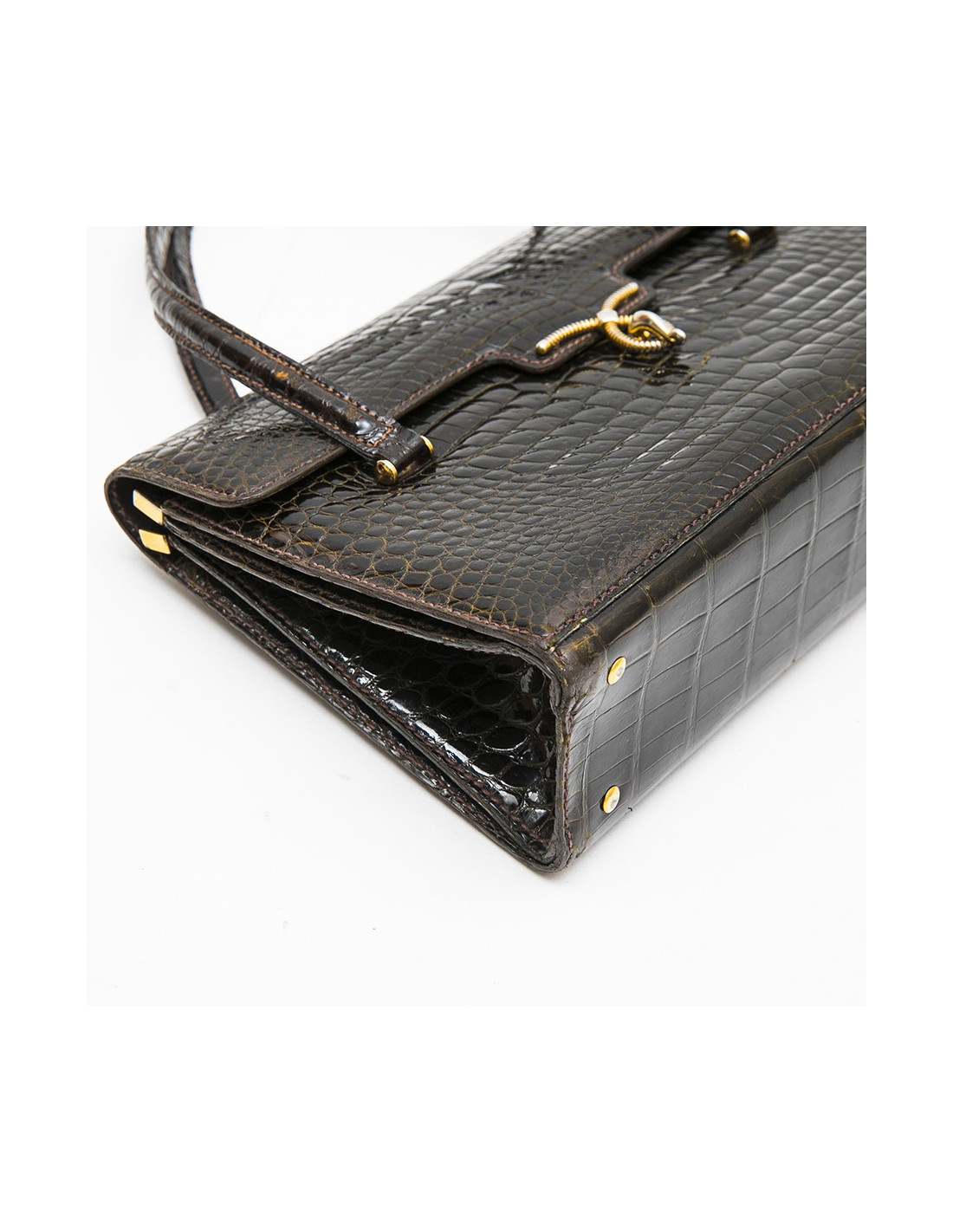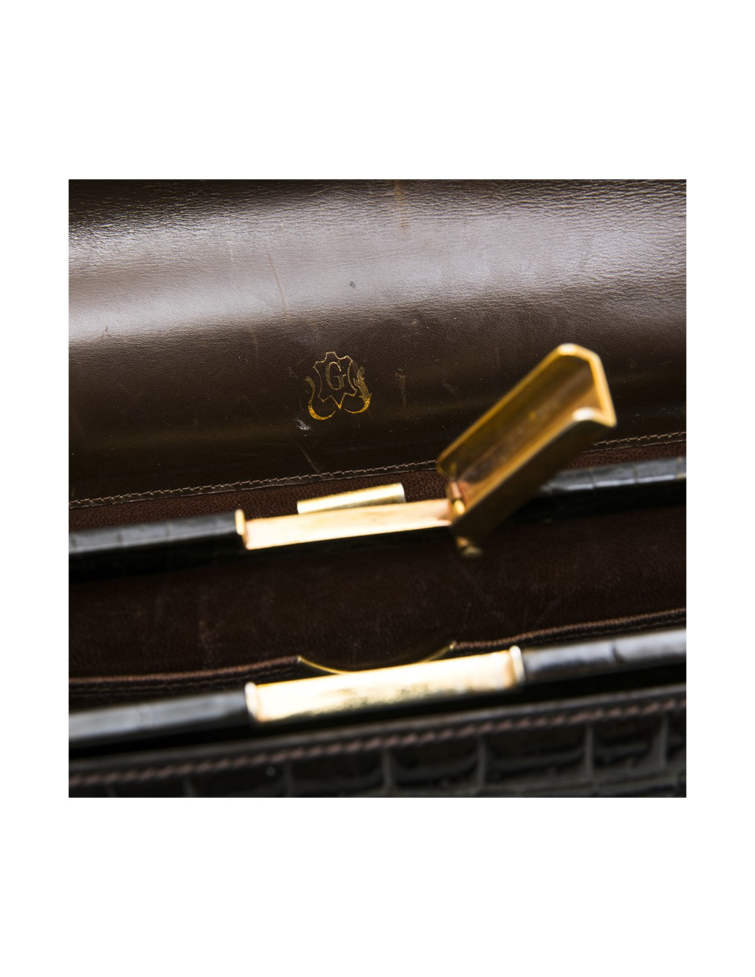 Collector. Gucci 70 'vintage bag in brown crocodile porosus. Gilded hardware. The interior is smooth lamb leather with 2 gussets. The first has 2 pockets, one closed, the second has an open pocket.