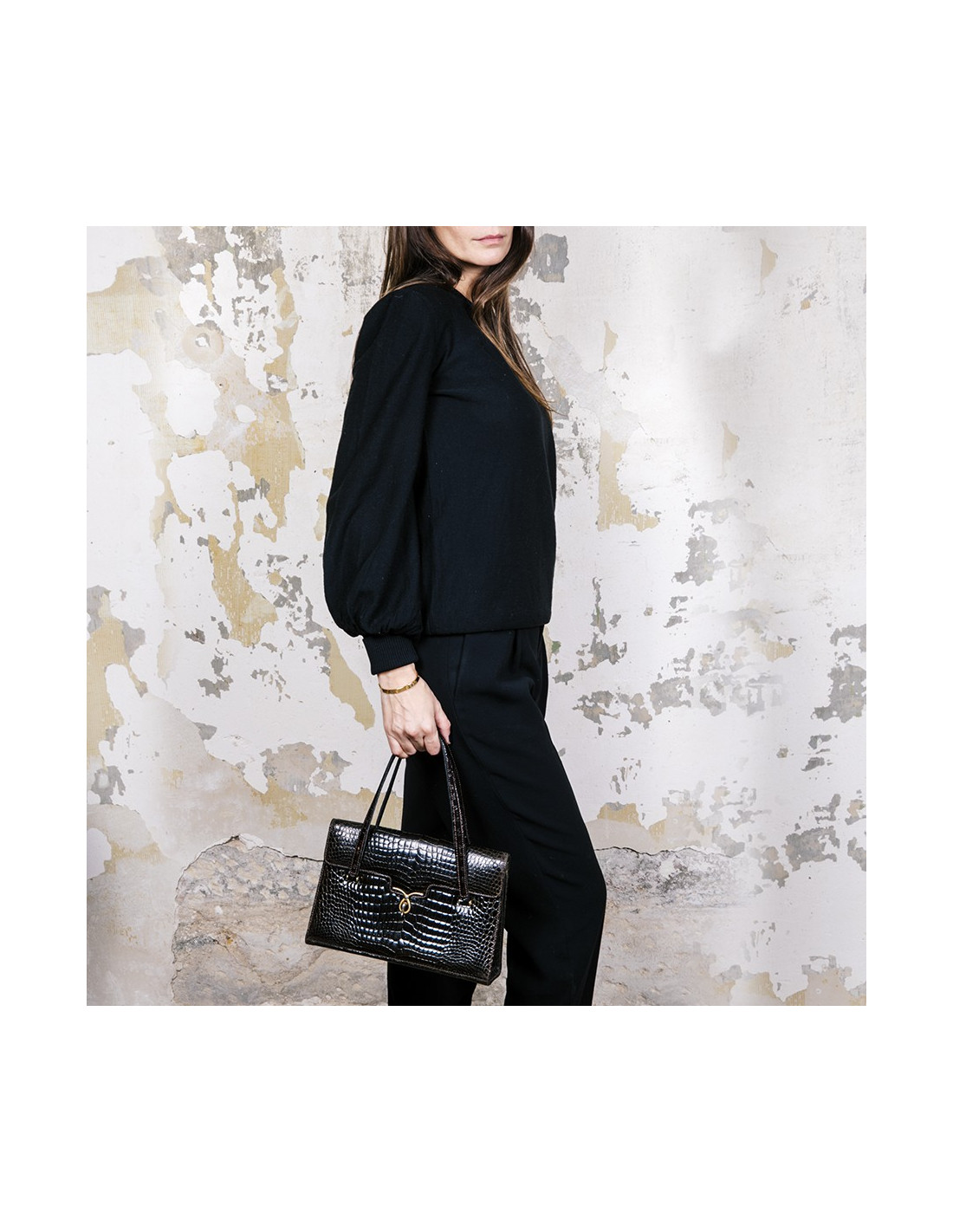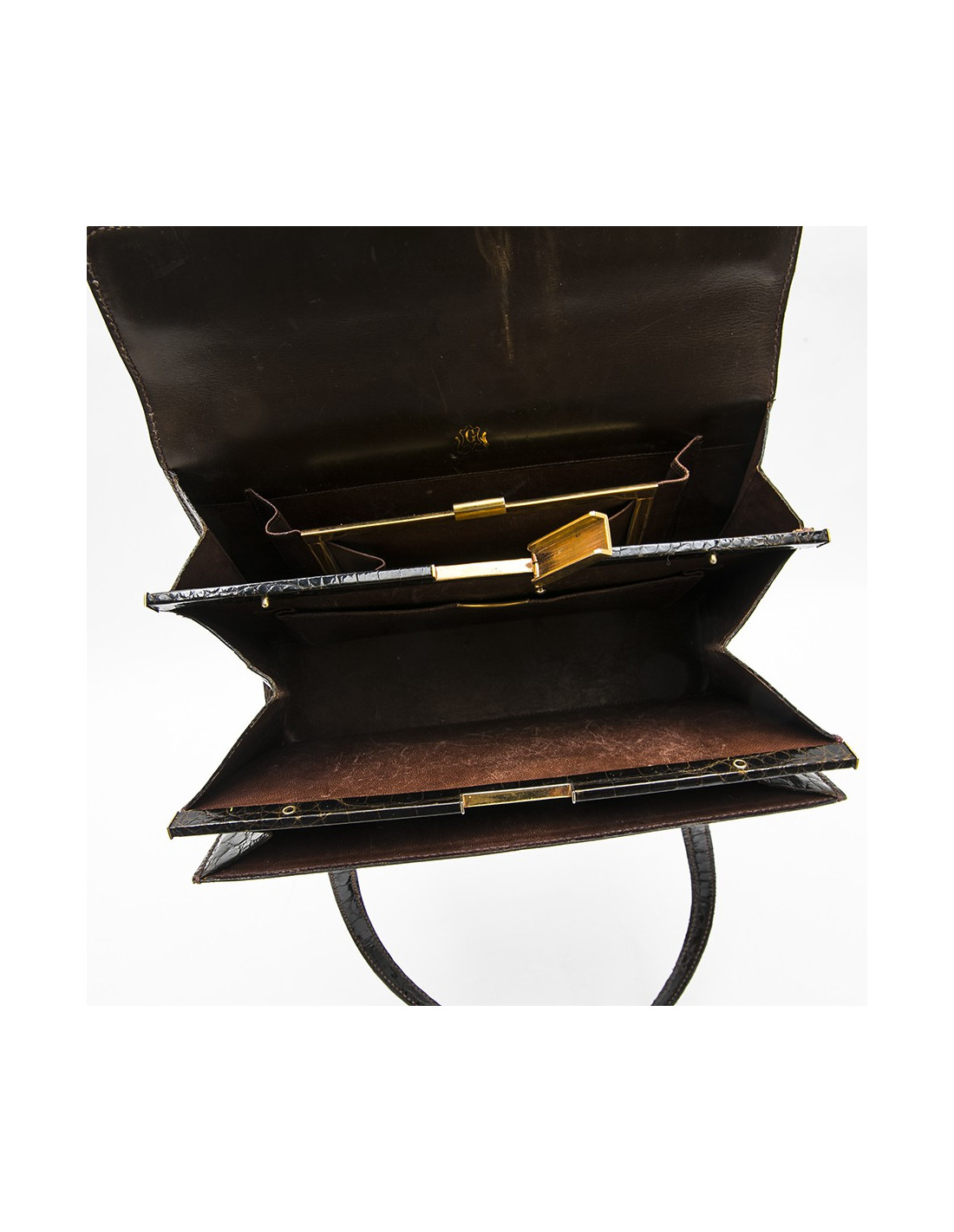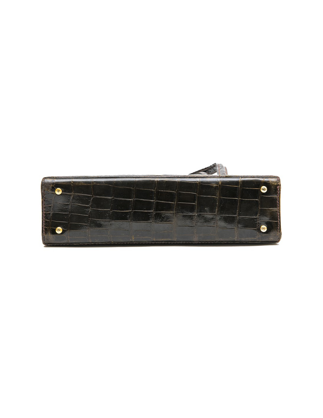 Collector. Gucci 70 'vintage bag in brown crocodile porosus. Gilded hardware. The interior is smooth lamb leather with 2 gussets. The first has 2 pockets, one closed, the second has an open pocket.